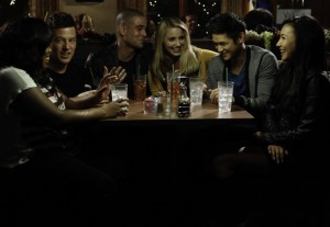 Returning alums include Quinn (Dianna Agron), Mike (Harry Shum Jr.), Puck (Mark Salling), Santana (Naya Rivera) and Mercedes (Amber Riley). And in an even weirder moment, Finn (Cory Monteith) joins them for dinner and they start acting like refugees from ST. ELMO’S FIRE looking back on the “glory” days at McKinley. Ummm, wasn’t those glory days six months ago?