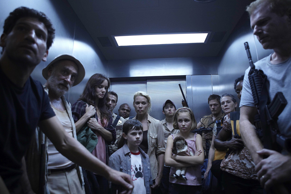 In the action-packed season finale of THE WALKING DEAD, Rick (Andrew Lincoln) and the group have found a temporary haven at the CDC, where Dr. Edwin Jenner (Noah Emmerich) is the lone survivor of the team that was attempting to find an answer to the horrific plague or – whatever it is – that turned the world into a zombie nightmare. Hot water and chilled wine offer a temporary respite from terror, but really folks, this is the last episode – how happy an ending do you think this is going to be?