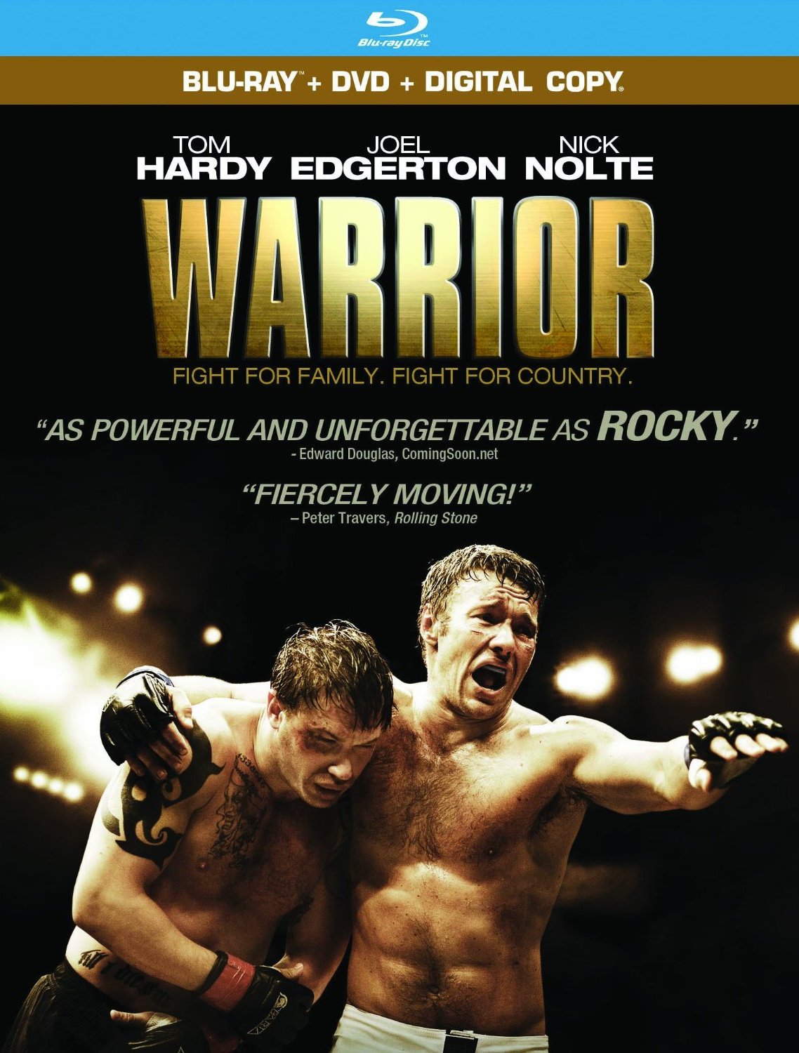 WARRIOR – Most mixed martial arts (MMA) films either have to deal with some dude that was wronged and is looking to get back at the wrongdoers or they must fight because they have no other discernible qualities beyond fighting. This one is totally different. It is a tale of two brothers that have grown apart and fight in a tournament competing against each other. All of the family troubles and the differences between the two come to a head including a number of past mistakes and regrets by both brothers. What we end up with is not so much a sports film but an emotional flick that is strong with family bonds and a lesson in how to forgive and grow closer.