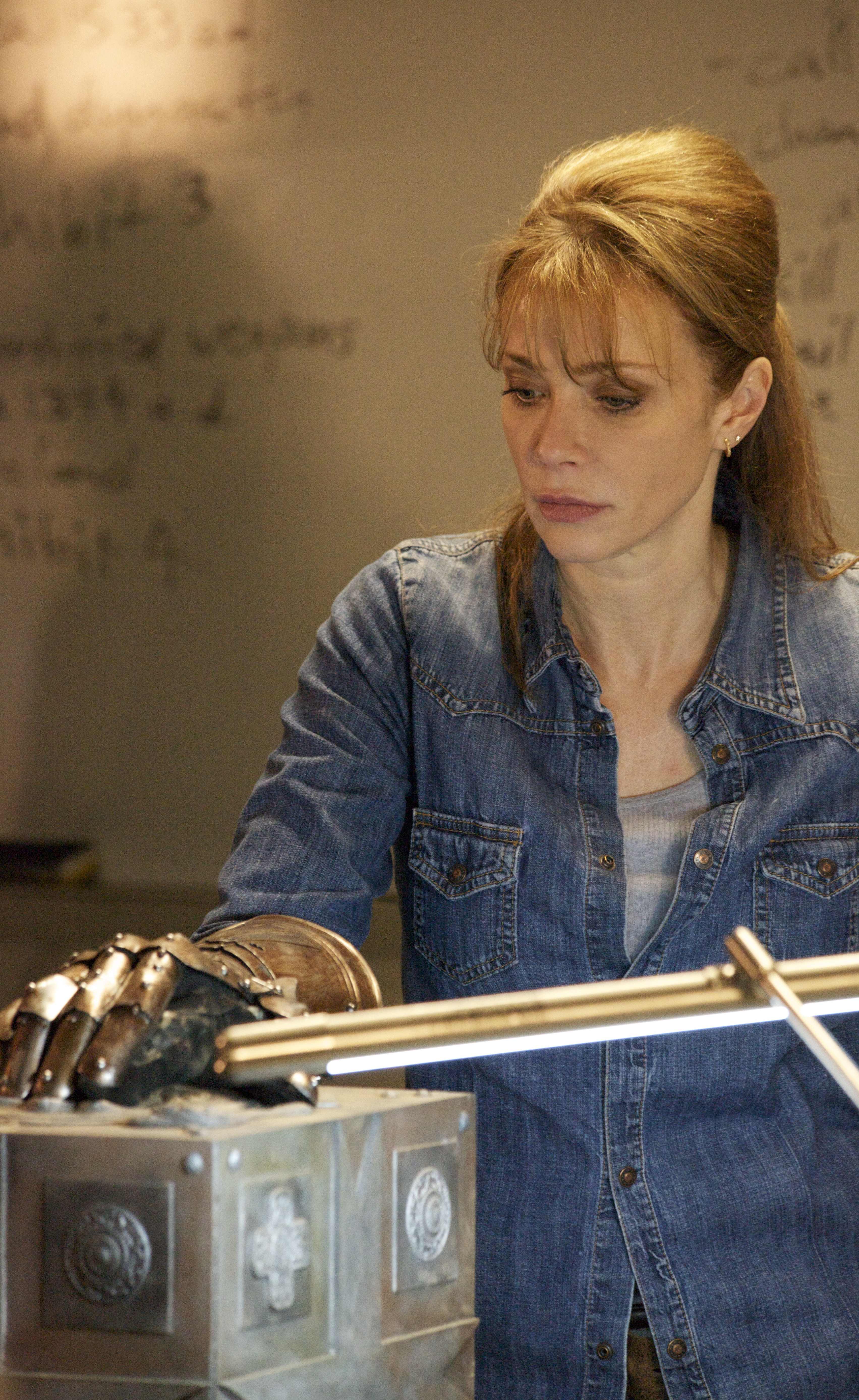 So we came up with this Templar box that Jake sketched it out, which essentially is this Templar cross that, when it’s thrown in the air, it’s like a flying guillotine. You pull a chain and it unbuckles and then snaps off the head and it becomes a box. So the idea is that this box never got used in battle and ended up disappearing. And now we’re in the present day where this archivist played by Lauren Holly is going through the school’s various artifacts that have been corralled over the years, and archiving and boxing the stuff up. And she comes across the banshee box and some other things that tie into it and [the characters] end up opening the box and they release the banshee’s scream.