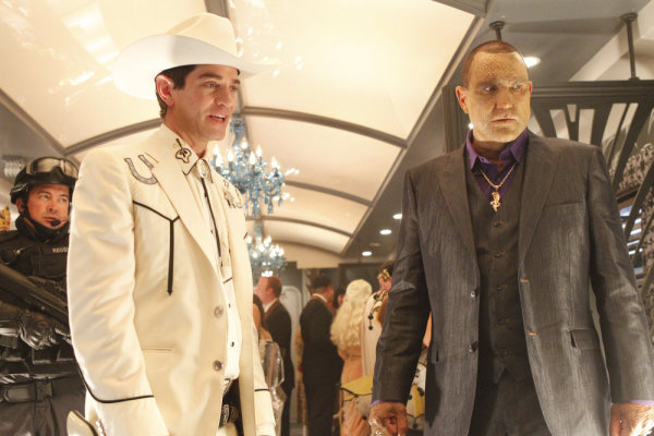 VINNIE JONES: On this, I probably was. I came over [to the U.S. from England] – [doing a TV series] just gives you a sense of, you know what you’re doing for a few months. As an actor, it’s sometimes pretty scary. You do a movie and that’s great, you leave that and you find a new family and you leave that and then off you go back home and you wait for the next one. Whereas on TV – I did a week on CHUCK, which was good fun, and then went in for this. I’m certainly totally having a blast with it.
