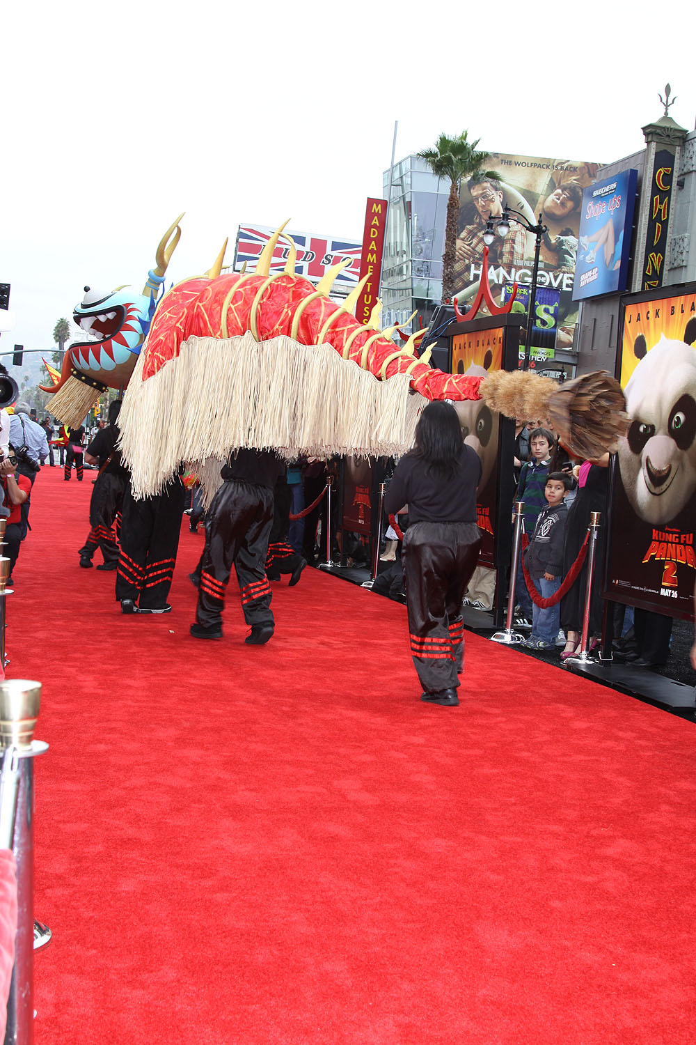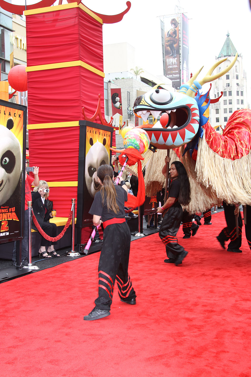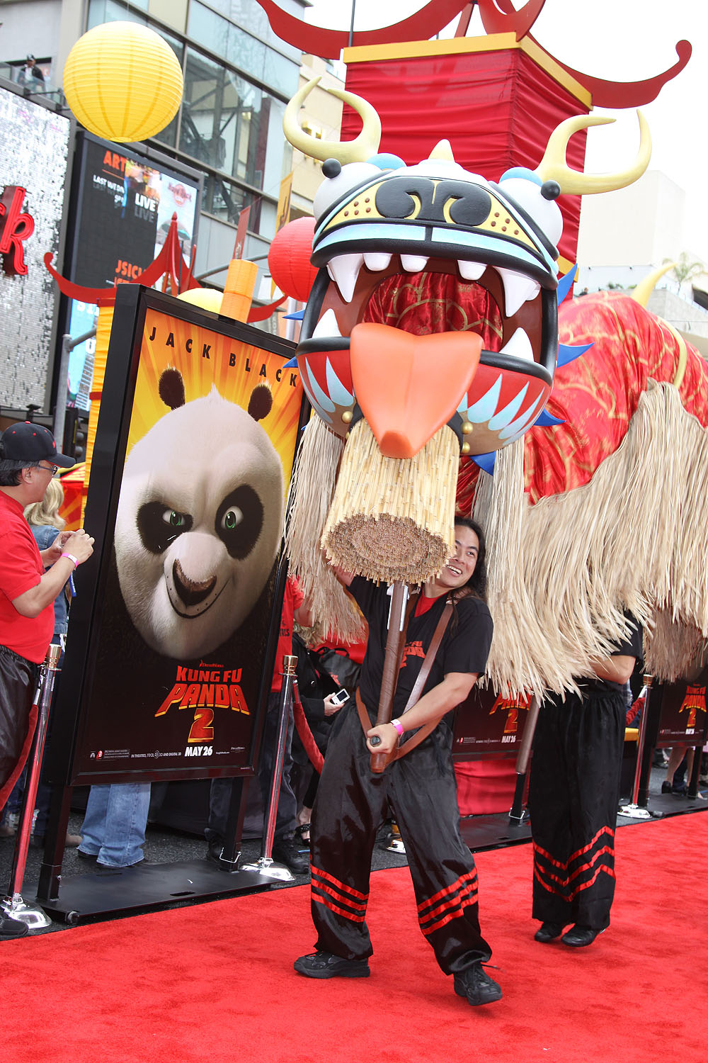 Before the premiere started a paper dragon was carried down the carpet to music by the Immortals. Also joining the fun was a costumed character of Po, which is Jack Black’s character in the film.