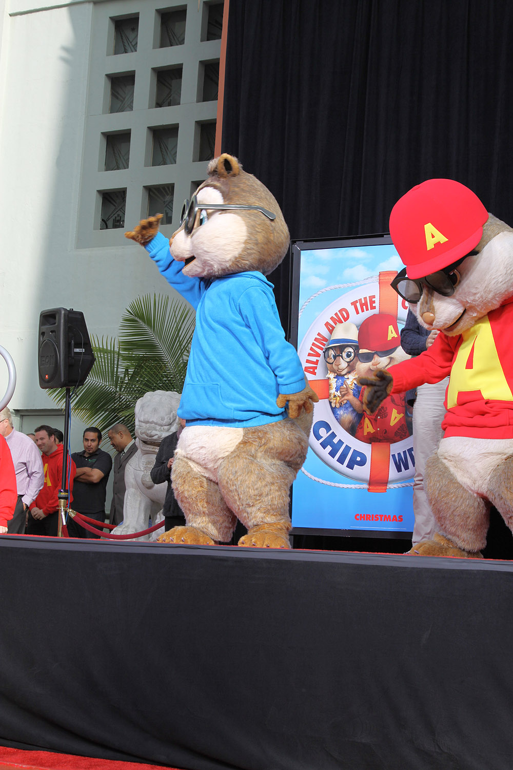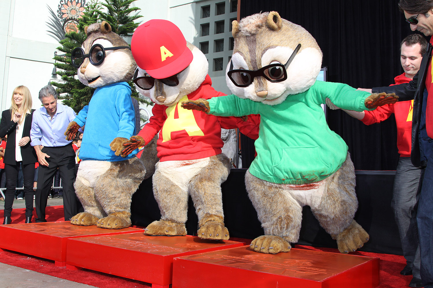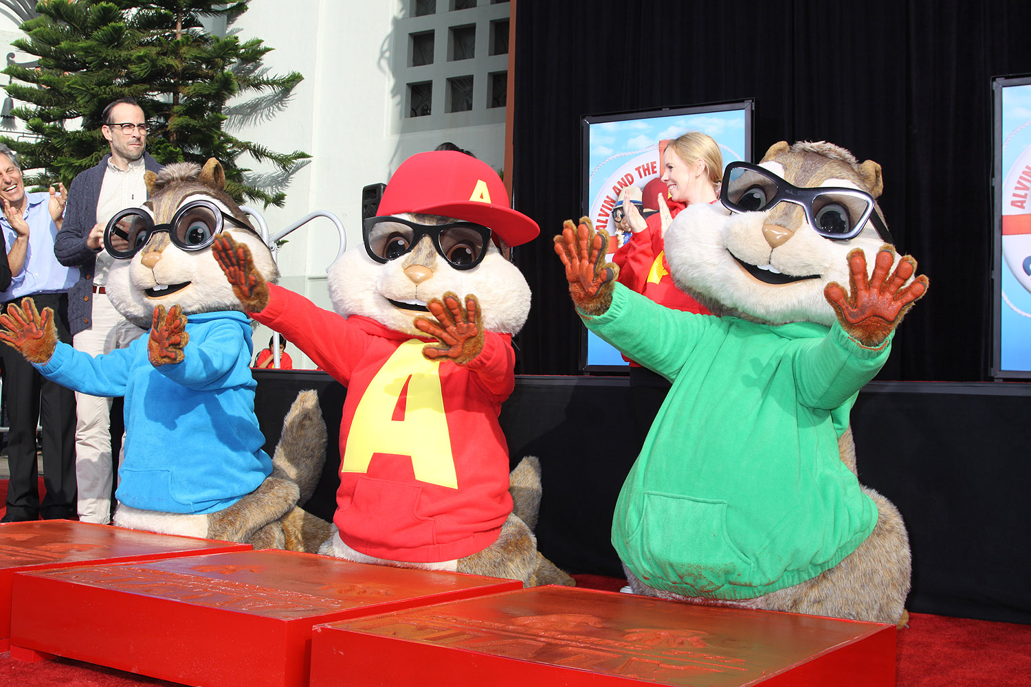 - Simon, Alvin and Theodore get ready to place paws in cement at the ALVIN AND THE CHIPMUNKS HAND & FOOTPRINT CEREMONY | ©2011 Sue Schneider