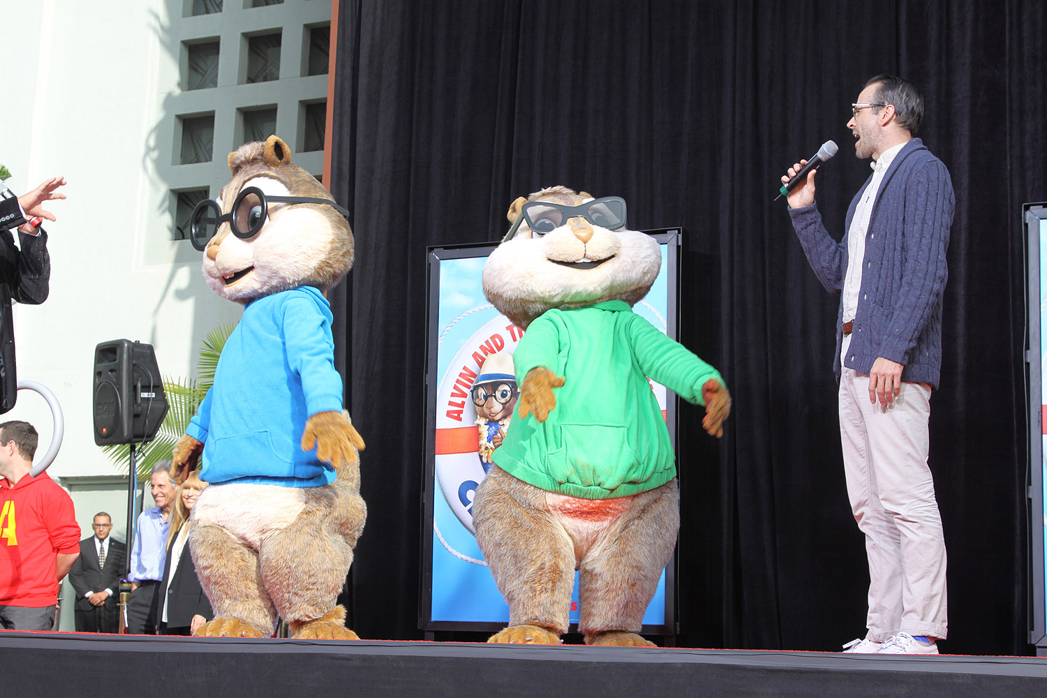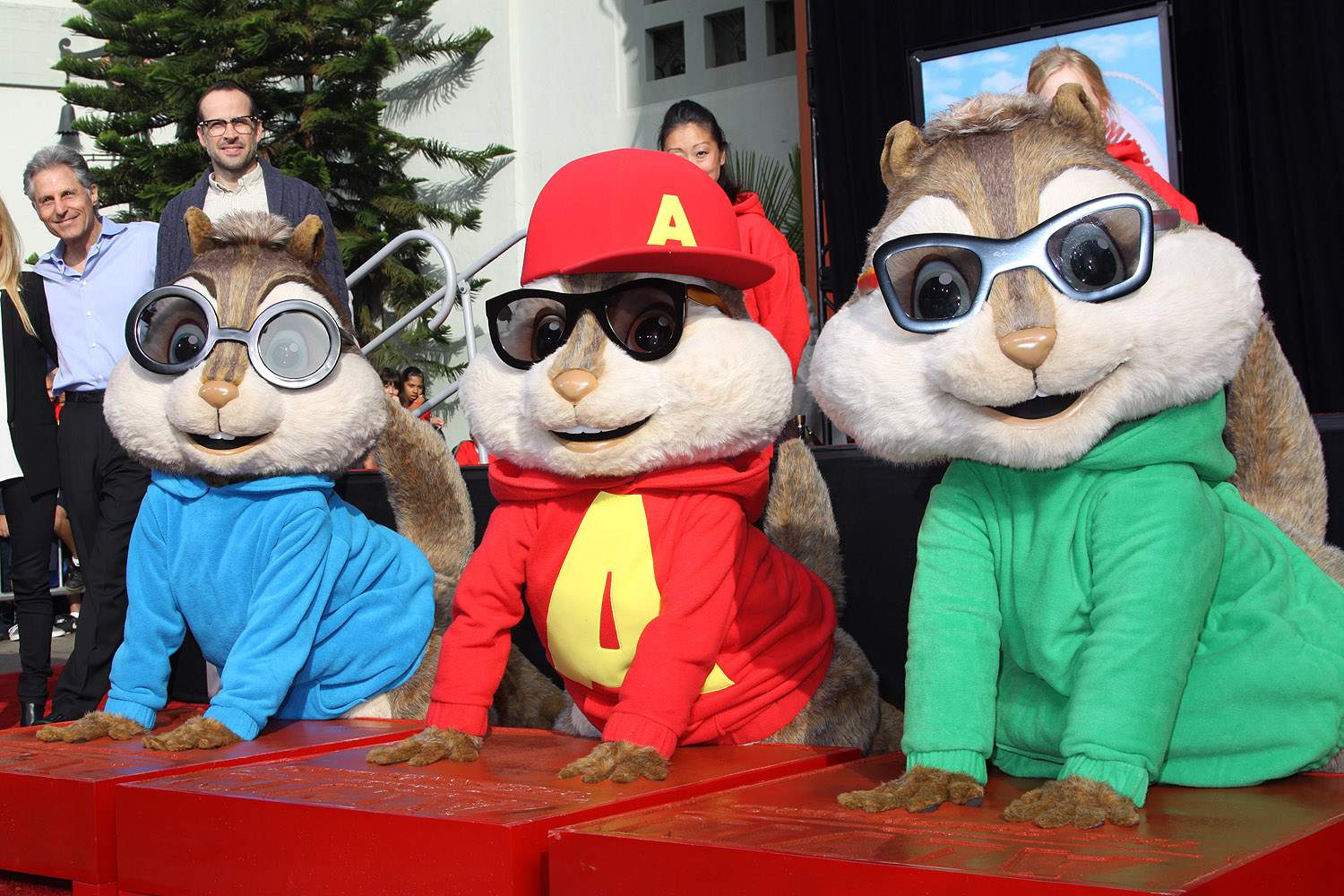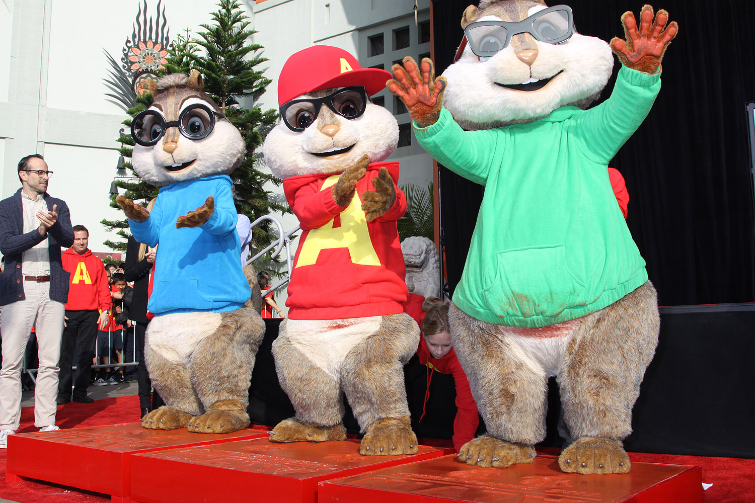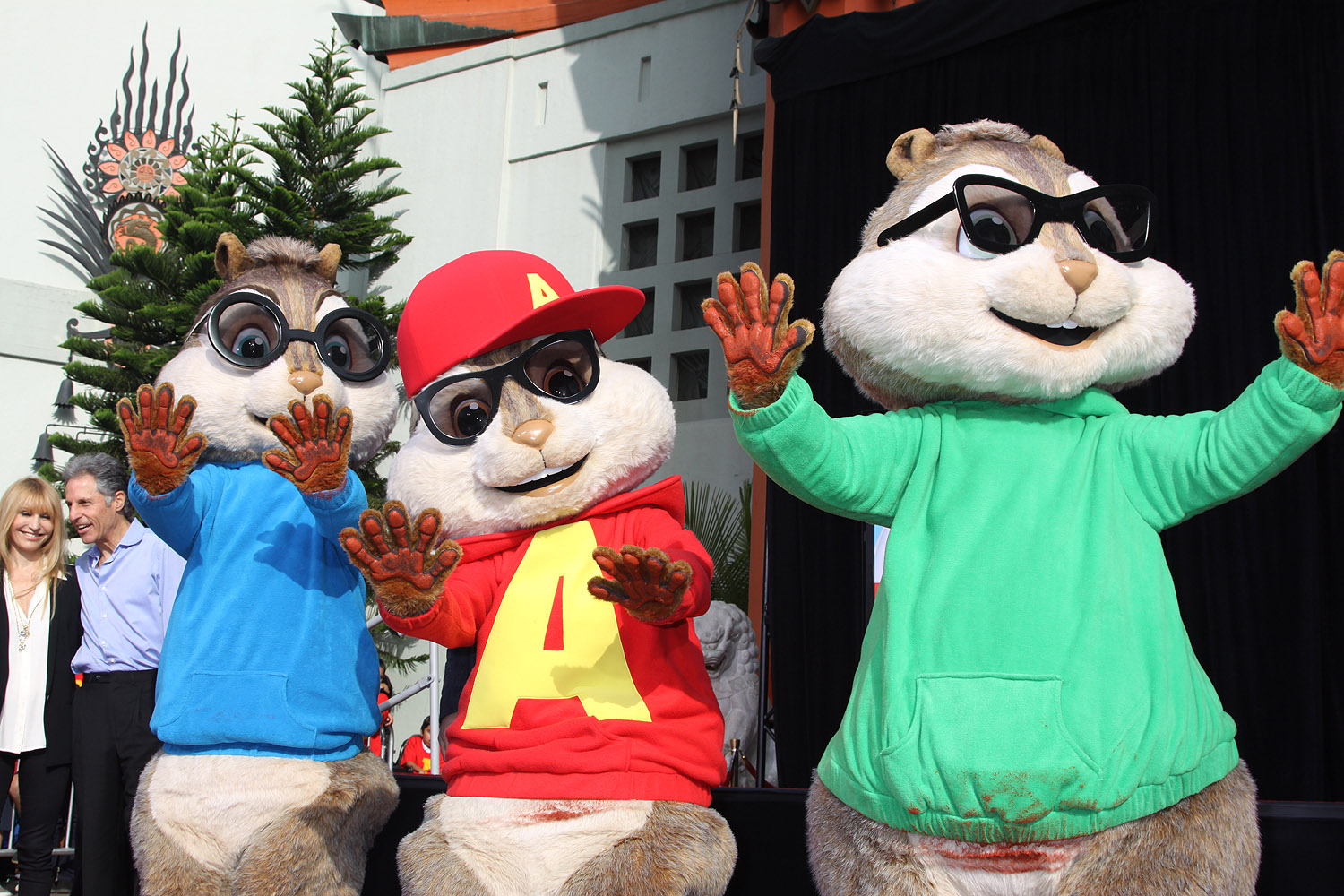 - Simon, Alvin and Theodore get ready to place paws in cement at the ALVIN AND THE CHIPMUNKS HAND & FOOTPRINT CEREMONY | ©2011 Sue Schneider