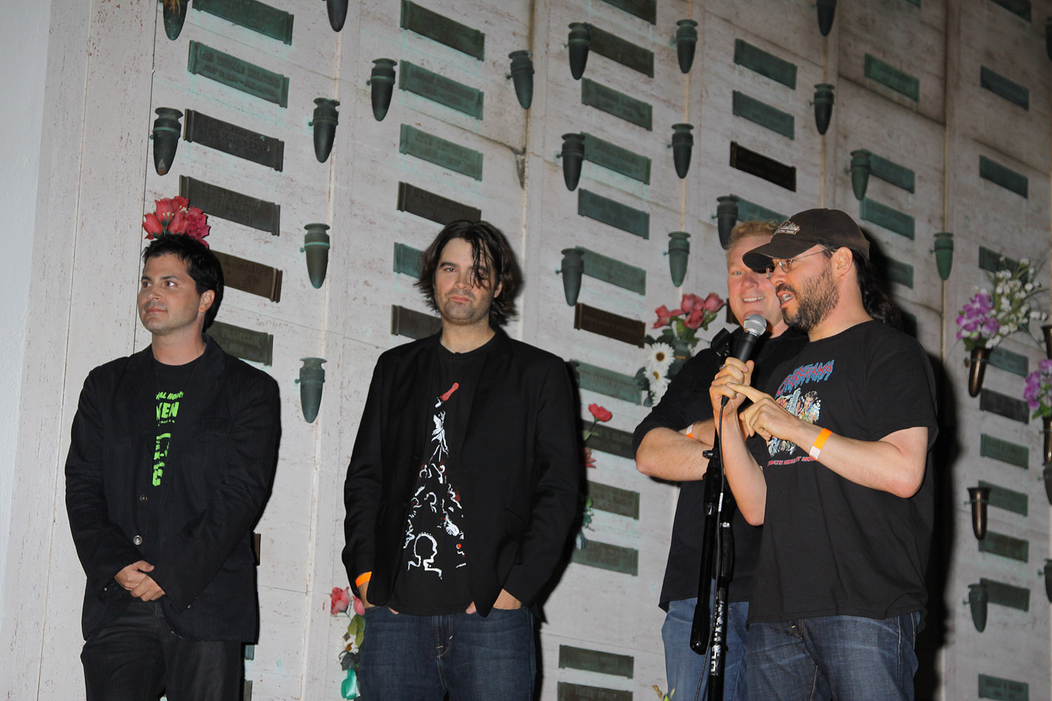 Image Entertainment, in conjunction with co-sponsor FEARnet held the World Premiere of CHILLERAMA recently at the Hollywood Forever Cemetery in Hollywood. Fans and stars sat on blankets on the Douglas Fairbanks lawn to watch the movie on the walls of the Mausoleum. It was nice night and you can be sure that the sprits of people buried at Hollywood Cemetery were watching too!