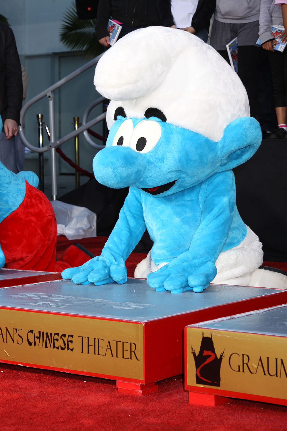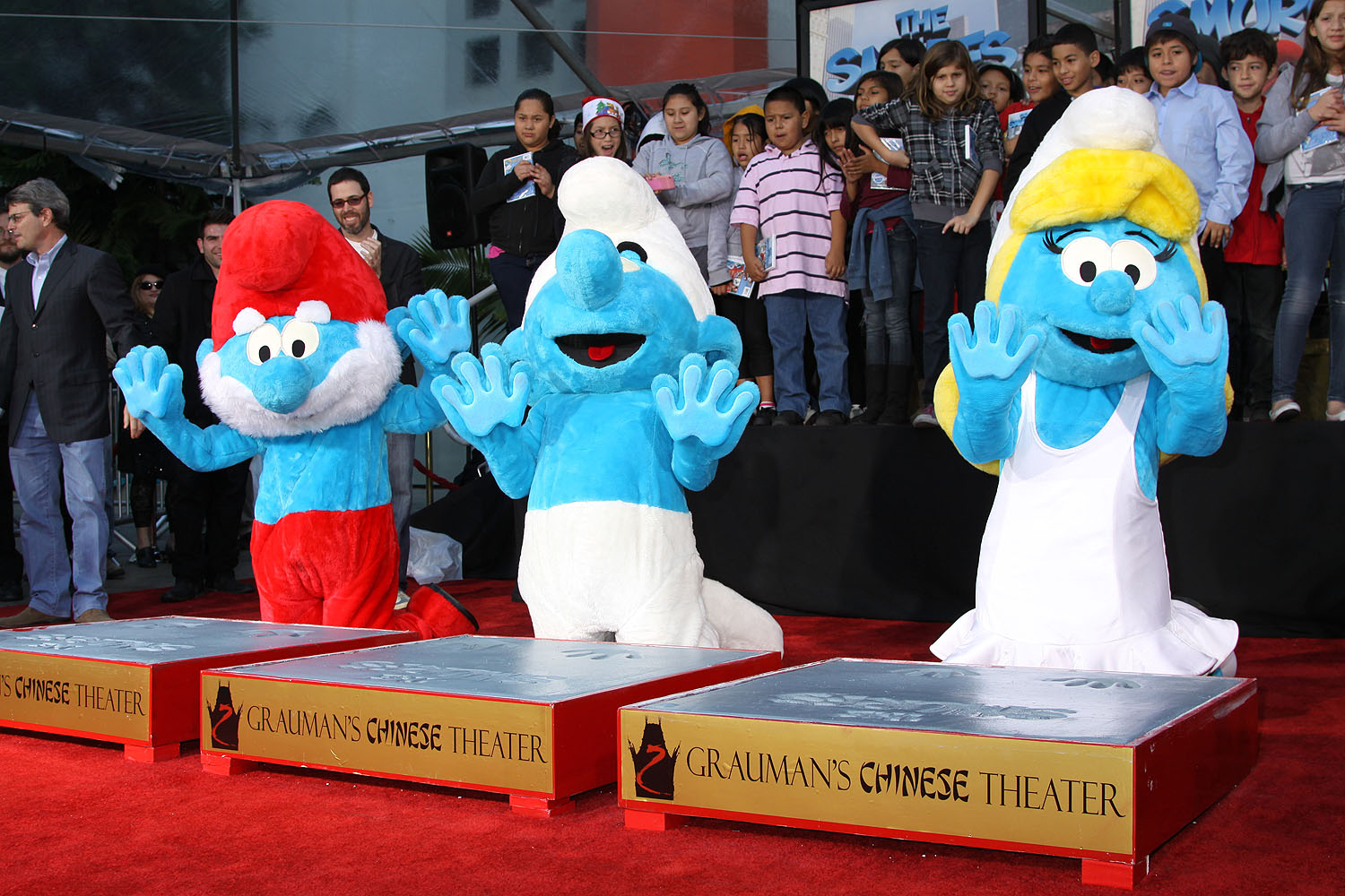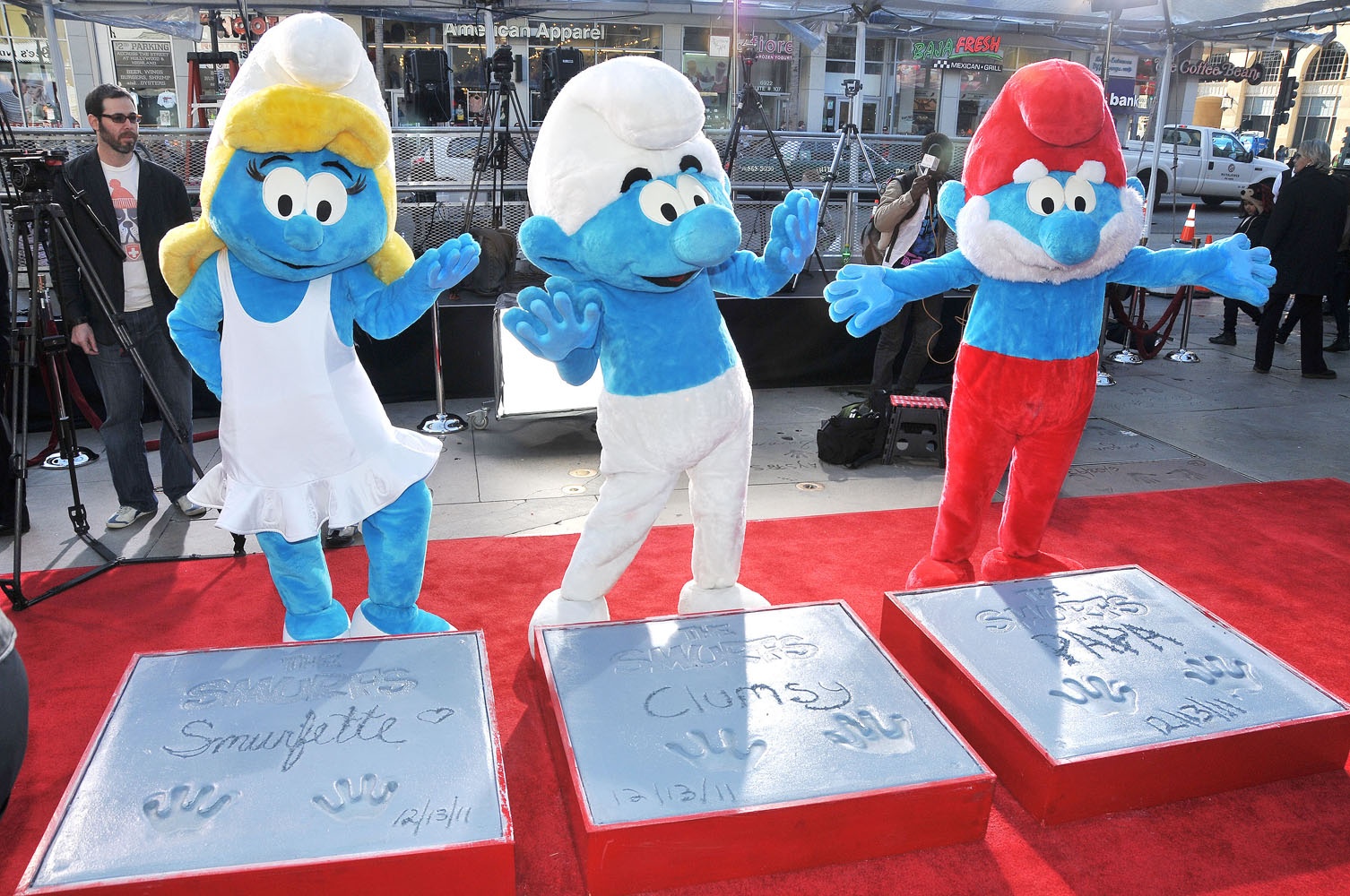 - Papa Smurf, Clumsy, Smurfette show hands at THE SMURFS Hand and Footprint Ceremony | ©2011 Sue Schneider