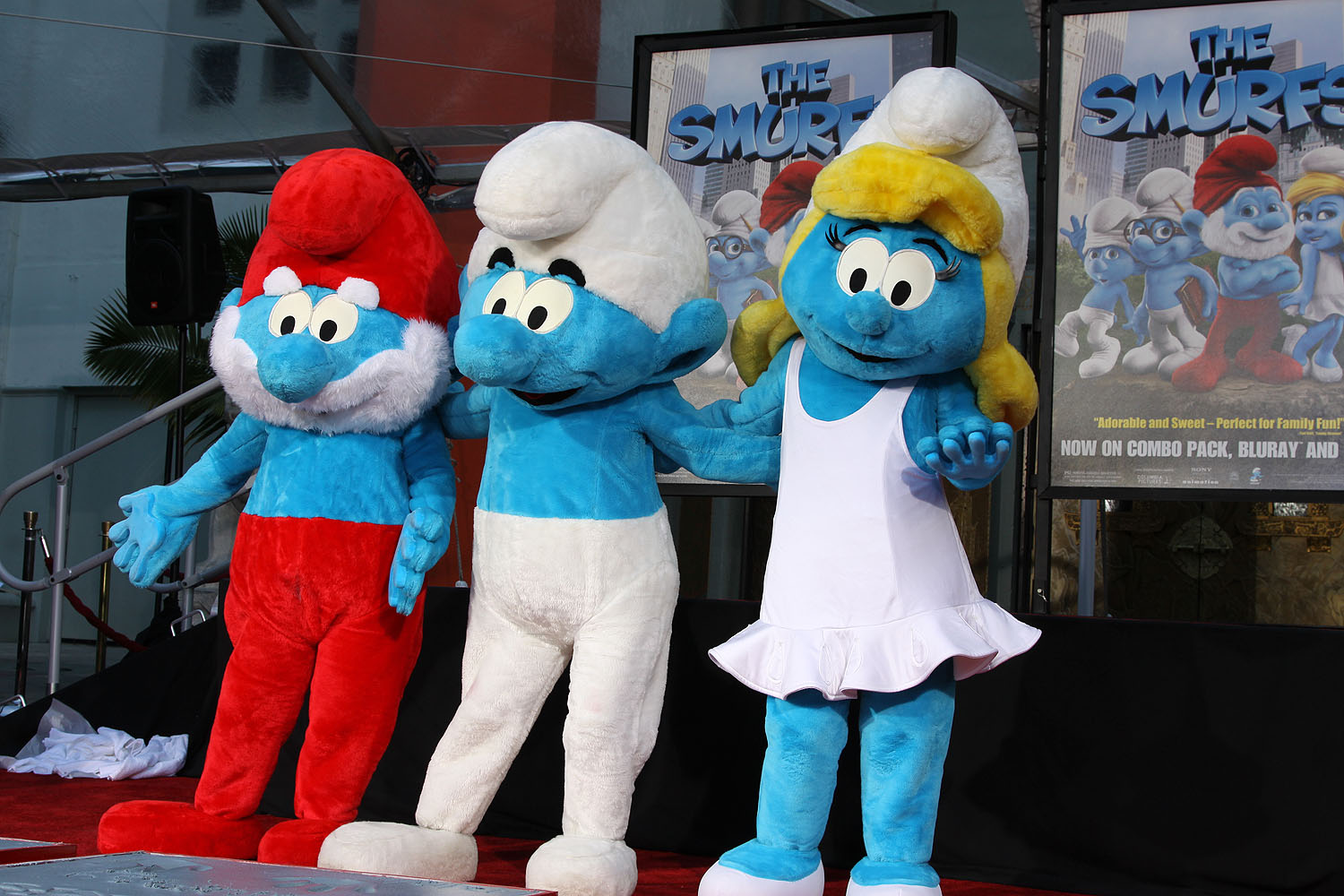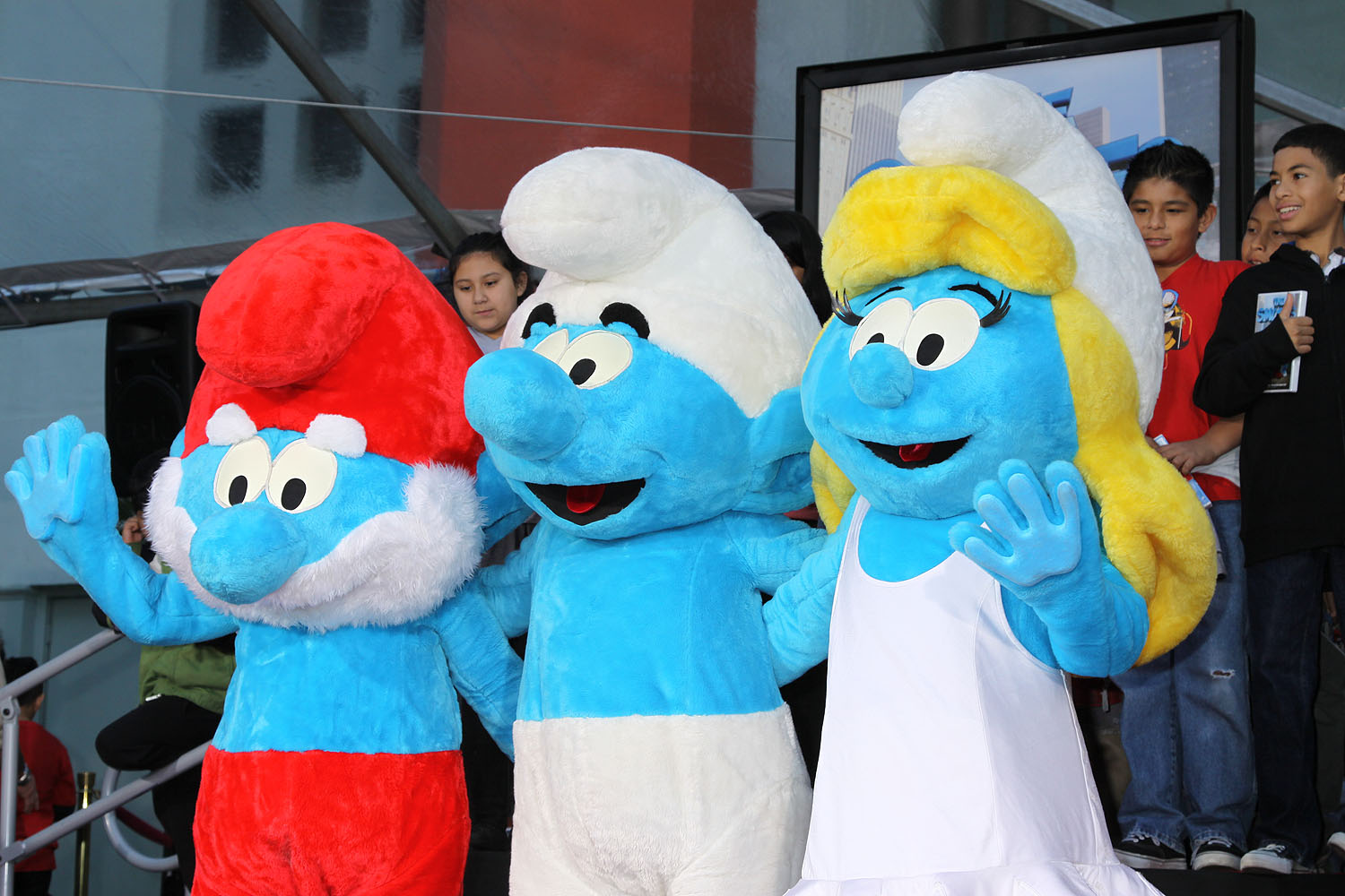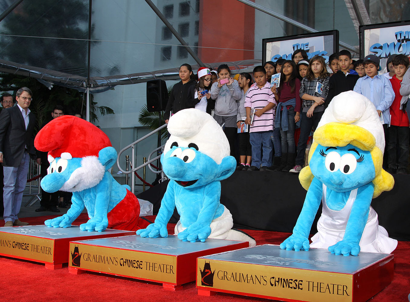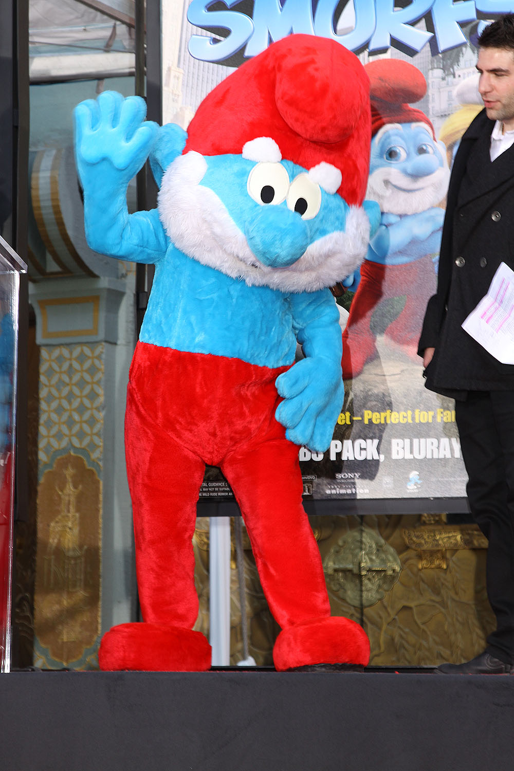 - Papa Smurf, Clumsy, Smurfette show hands at THE SMURFS Hand and Footprint Ceremony | ©2011 Sue Schneider