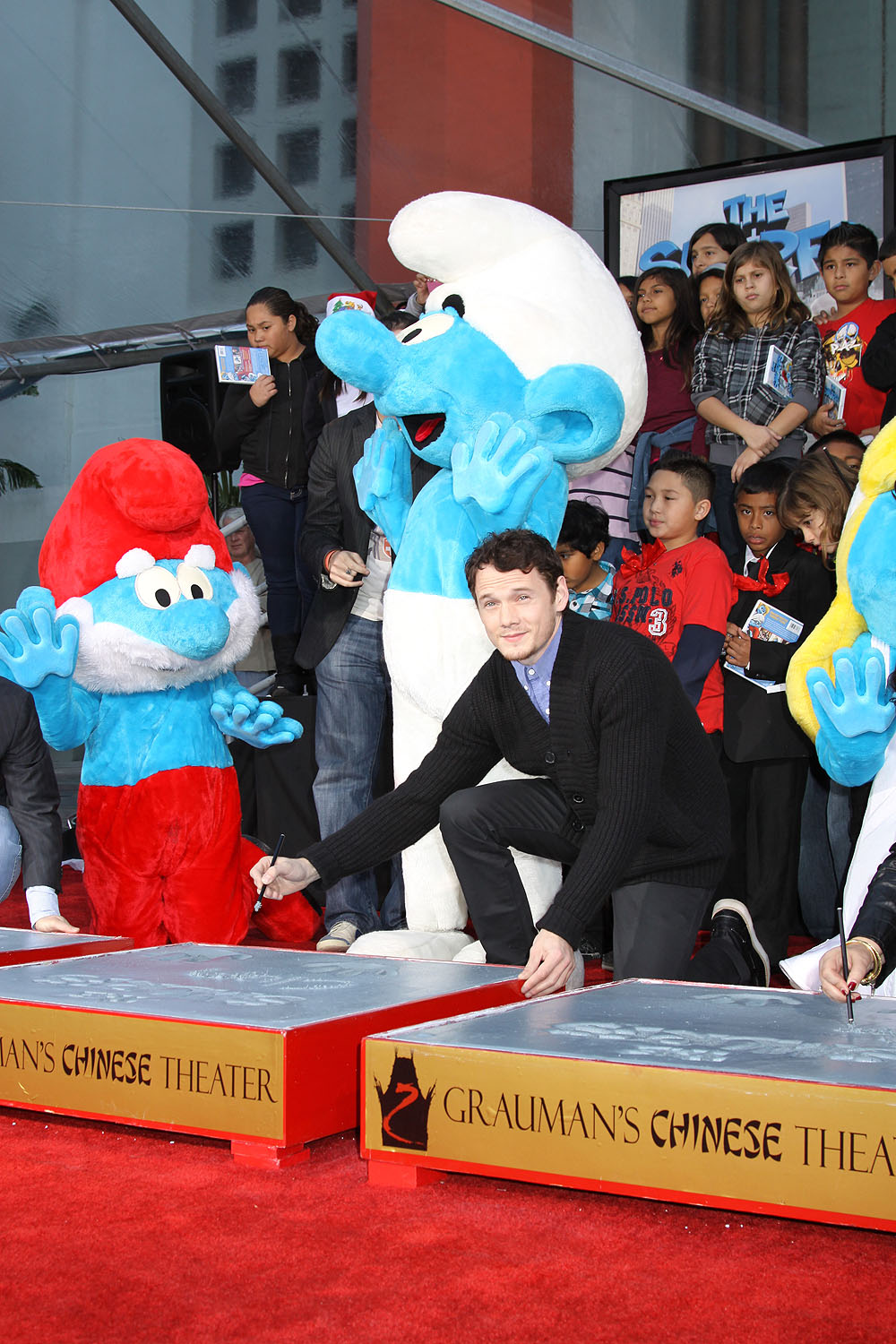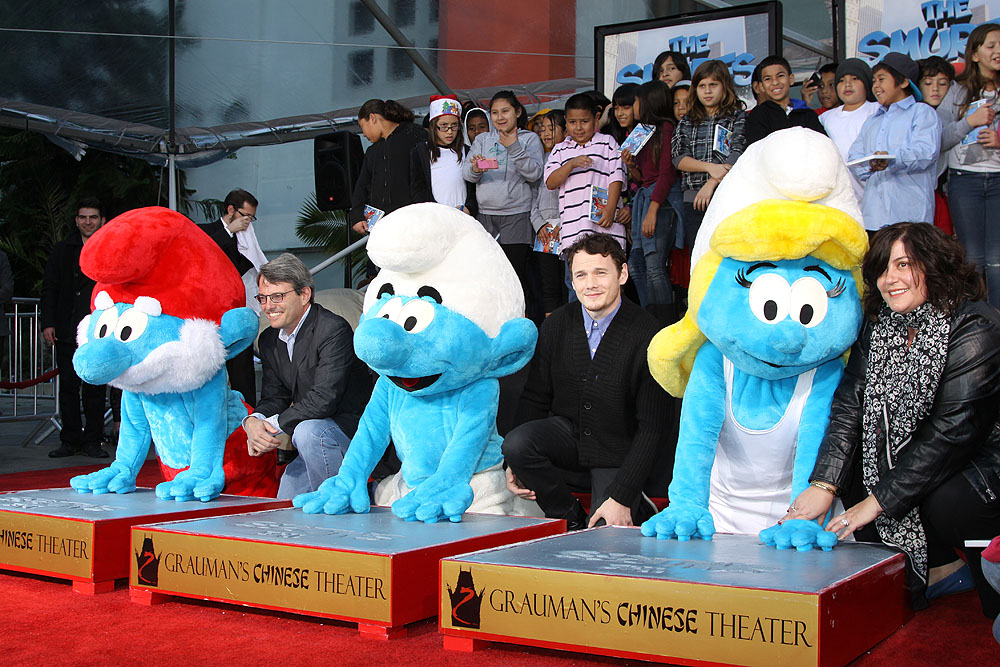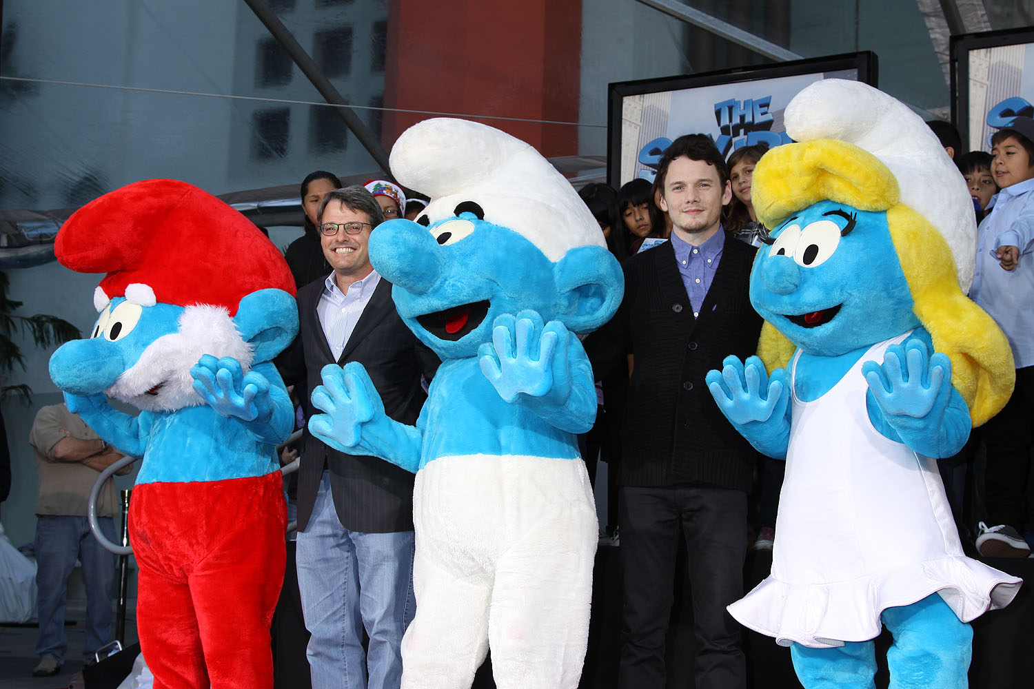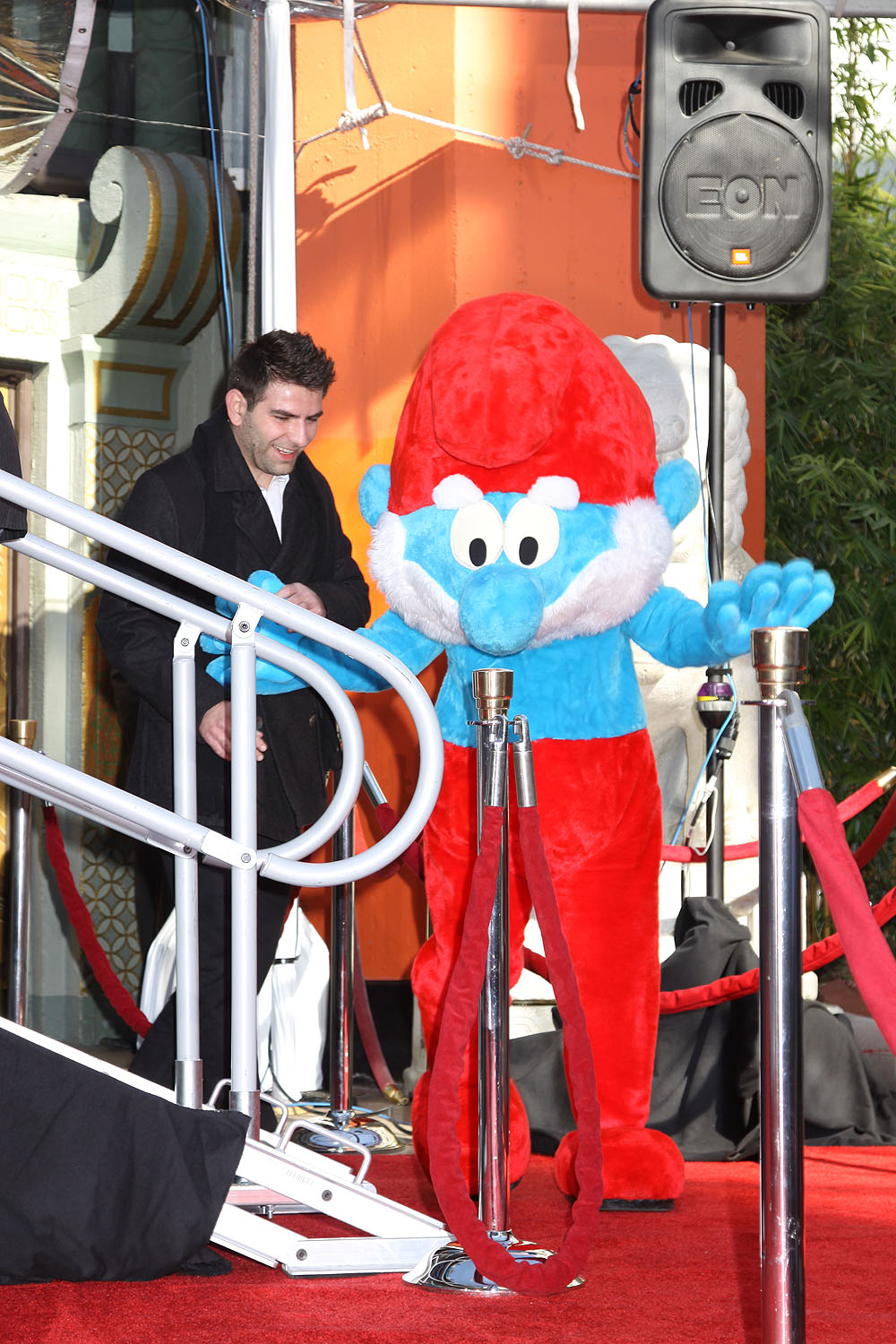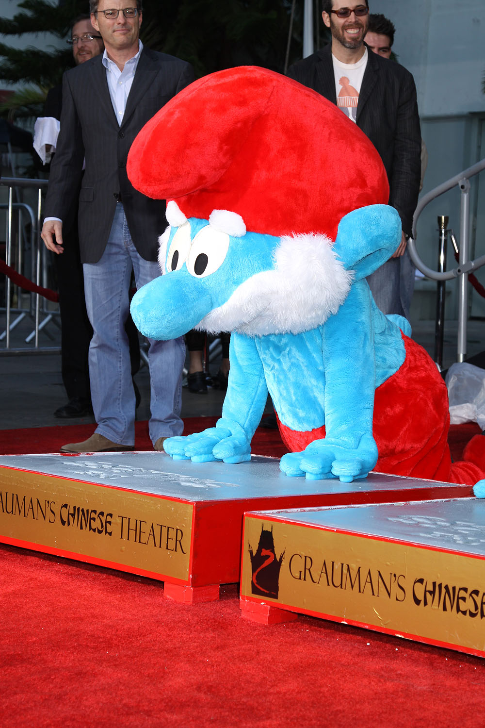 - Papa Smurf, Bob Osher, Clumsy, Anton Yelchin and Smurfette at THE SMURFS Hand and Footprint Ceremony | ©2011 Sue Schneider