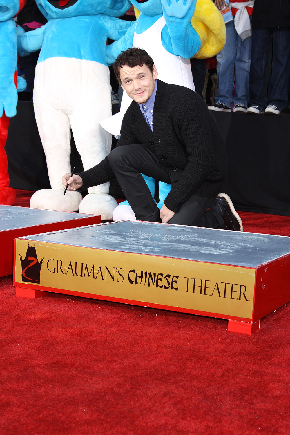 - Anton Yelchin signs Clumsy’s cement at THE SMURFS Hand and Footprint Ceremony | ©2011 Sue Schneider