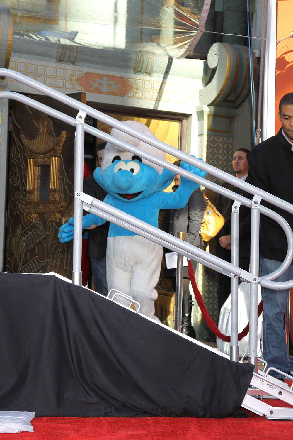 - Smurfette, Clumsy, Papa Smurf at THE SMURFS Hand and Footprint Ceremony | ©2011 Sue Schneider