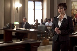 GUGINO: It’s definitely outside of her comfort zone, because I think she is actually someone who loves her profession and you get insight into this, but she is a woman who I think is very happy being single, very happy being autonomous, being able to have men come and go, and be really good at what she does, and I think this certainly takes her to a place where she gets in a little deeper than I think she has in a long time.