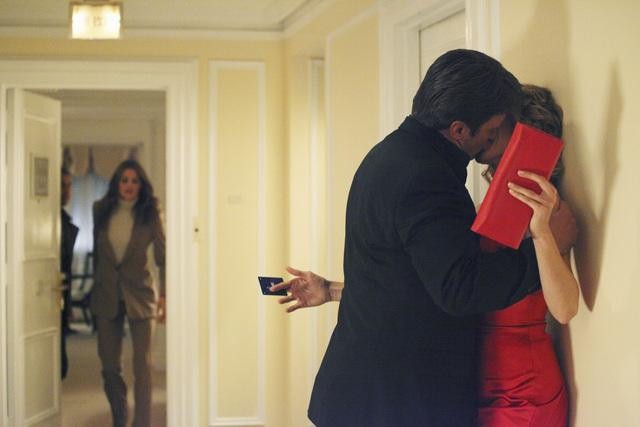 Looks like we’ve got some thawing on the part of Detective Kate Beckett (Stana Katic) – who is ostensibly not in love with author Richard Castle (Nathan Fillion), who works with her to solve crimes. Like heck, she isn’t, and it comes out when Castle gets tangled up with a really hot insurance investigator who horns her way into their latest case.