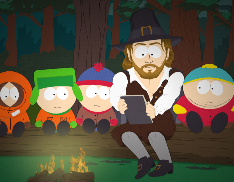 It’s that time of the season where SOUTH PARK drops the politics and current events and just gives in and gets silly. This year it’s with the hilarious episode “A History Channel Thanksgiving.”