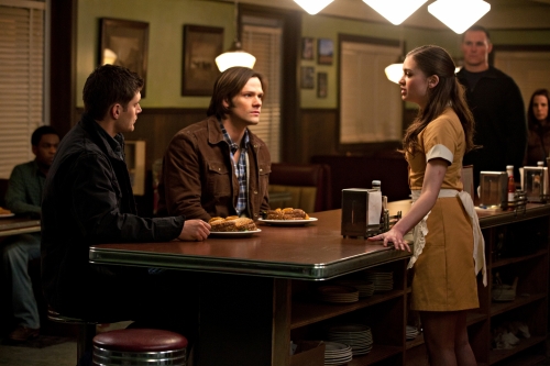 Jensen Ackles, Jared Padalecki and Julia Maxwell in SUPERNATURAL - Season 6 - "Mommy Dearest" | ©2011 The CW/Jack Rowand