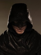 Vince manages to jump through the window of Chess’ high-rise, with the cape slowing his descent enough to avoid turning him into Splat-Man, and he’s rescued by Orwell (Summer Glau), who’s angry that Vince failed to include her in this endeavor. Circus owner Max Malini (Keith David) is likewise none too pleased with this rogue effort on Vince’s part. He heals Vince from the poison, but takes away the cape. Vince refuses Max’s offer of airline tickets to get Vince and his family out of town. Instead, Vince recovers and crafts a mask for himself.