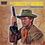 ARKANSAS‘ bold symphonic action quickly defines no-nonsense heroism with a throttling theme and angry percussion, along with such effective musical conventions as a wearily played harmonica, an Indian drumbeat and a jaunty choral melody that trumpets its avenging gunslinger angel to the heavens. De Masi is completely reverential in terms of musical good and evil, no more so than with an ANGRY MAN, whose fate is to die with gun in hand. He gets it with a throatily memorable title song by Peter Tavis, once again accompanied by a swooning chorus. De Masi clops along with harmonica in mouth, a handily strumming guitar, baleful horn and even some subtle rock nuances, his vengefully swirling orchestral theme nicely bringing to mind Elmer Bernstein and John Barry.