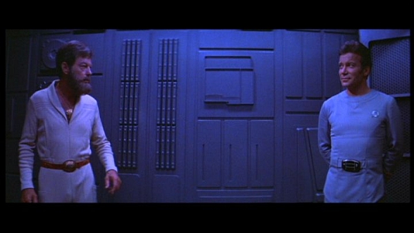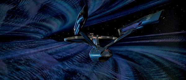 Once the Enterprise reaches the cosmic cloud that’s threatening Earth, much of the film plays like a slightly more fathomable take on 2001‘s “Stargate” sequence, as the crew look with mouths agape at the incredible light displays and model work that swallows their ship whole. In no other series entry is music so important in that respect (especially since its sound effects weren’t completed in time), with Goldsmith carrying entire dialogue-free, effects show-off sequences. Carried on floating clouds of hypnotic melody, Goldsmith’s “V’Ger” music plays as if we’re in a haunted church, full of shimmering string gestures, tranquil piano and harp, a booming, Bach-like Wurlitzer organ, eerie electronics and the inimitable, reverberating percussion of The Blaster Beam.
