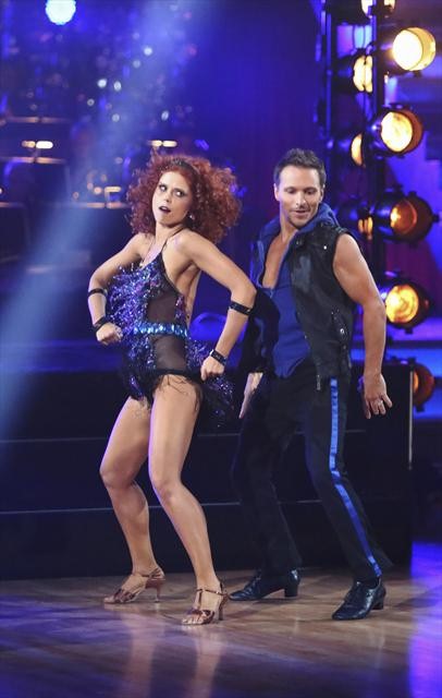To lighten the mood, Frankie Mareno performed accompanied by the DWTS Troupe and special guests Kyle Massey & Lacey Schwimmer. Next let off the hook were Johnson & Hough and then Apolo Anton Ohno & Karina Smirnoff. Also safe from elimination were Kelly Monaco & Val Chmerkovskiy, which left Lachey & Trebunskaya in jeopardy and then…out of the competition.