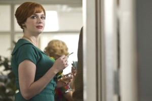 One of the other things MAD MEN has done is made a sex symbol and fashion icon of Christina Hendricks, who plays Joan Holloway Harris. Over the seasons, Joan has risen from being a secretary to, this season, a partner in the firm. Hendricks, born in Tennessee and raised in Idaho, acquired a cult following for her role as the many-named con woman Saffron on FIREFLY and was a series regular on BEGGARS AND CHOOSERS and KEVIN HILL. She also had a supporting role in last year’s acclaimed feature film DRIVE.