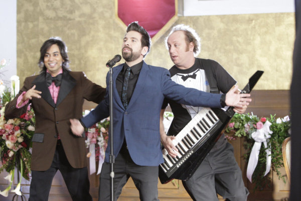 SAHAY: I felt thrilled that I got more to do, horrified at the song choice, because it’s a tough song to sing. Some of the phrasing in there is awkward. It was one of the most difficult songs to sing. I mean all the songs – then we had to do “Mr. Roboto” and “Fat Bottomed Girls.” These are brutally hard songs for a non-singer to tackle. It was basically a kind of karaoke. The song is arranged by the brilliant Tim Jones, who does the music for CHUCK, and Scott [Krinsky], as he said, fakes [playing instruments] very well and I sang over that, or through that, or under that, as the case may be. That’s sadly my voice.