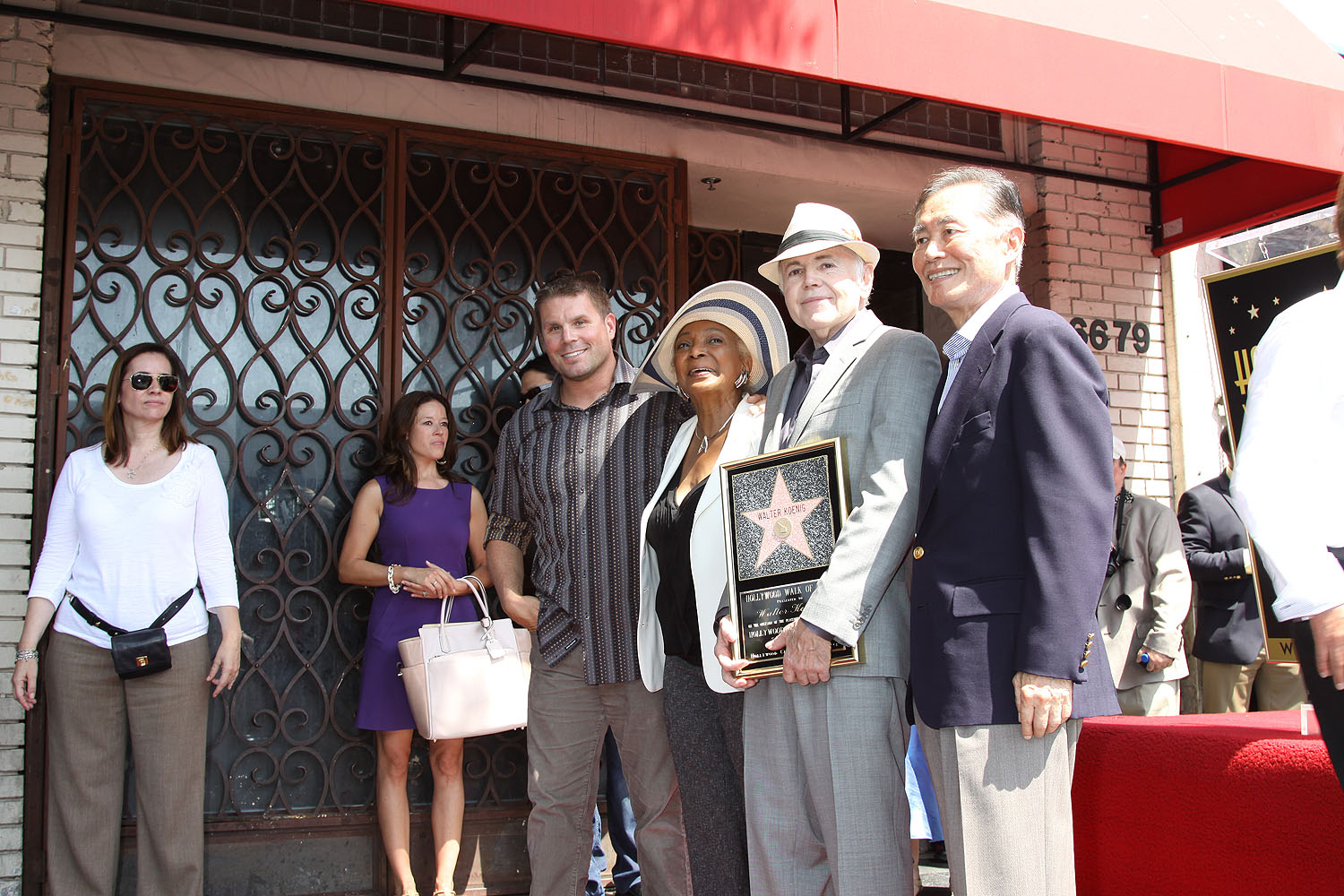 - Eugene “Rod” Roddenberry Jr., Nichelle Nichols, Walter Koenig and George Takei at the Hollywood Walk of Fame Ceremony for Walter Koenig | ©2012 Sue Schneider
