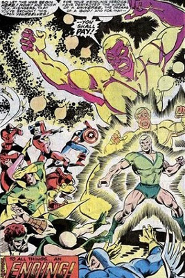 Michael Korvac is a messiah-like maniac imbued with the power cosmic and determined to bring Utopia to Earth…on pain of death! Requiring the help of other heroes to have a hope of bringing him down, the Avengers regretfully face a foe that may be nuts but only wants to bring happiness to everyone. Ah, pathos.