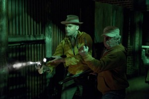 The actors were given a lot of leeway in terms of giving input on their characters, Devane says. “When you have a lot of freedom in a situation like that, it’s always fun to create that character,” he says. “So the whole idea of my guy with the hat and this jacket, everybody agreed that would work, and Billy coined the phrase ‘Lepre-cop,’ so we decided we were Lepre-cops,’ which was great. It was always fun. Every time we tried to get a little tongue in cheek with it, everybody was happier. So we took kind of a tongue in cheek approach to it and I think it worked out really good. The director has a sense of the overall feel of the piece. So if you get out of line or you kind of get off of [the overall tone], he’s there to remind you that you might be going a little too far, or maybe you’re not going far enough. That’s what the director does. He really helps you in that area.”