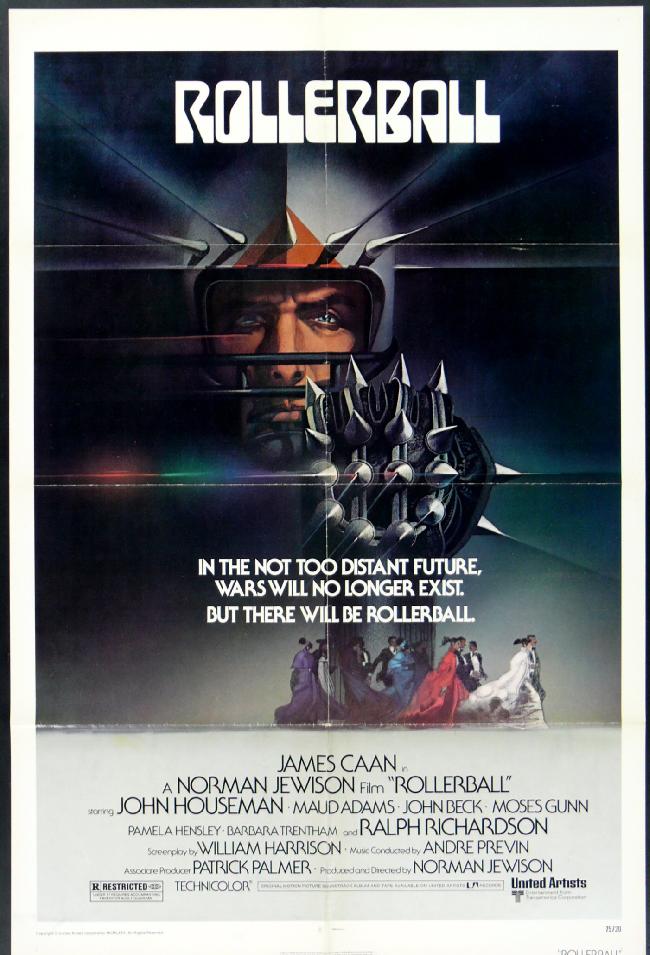 #3: ROLLERBALL (the original): This iconic James Caan starrer was actually a huge success in 1975, that also nearly made Bach’s classic Toccata and Fugue into a quasi-pop hit. In RB’s future, corporations have replaced governments (self-fulfilling prophecy?), and an ultra-violent televised sport known as Rollerball represents these various regions/companies. This game is supposed to help control the populace by demonstrating the futility of individuality, but one player, Jonathan E., becomes its star and hence the poster child for not only his own personal freedom, but that of the everyman. Jonathan’s rise to fame threatens the corporations’ control, so in an effort to remove him from the sport, they start to increasingly scale-back the game’s rules (no more penalties, no more time limits, etc.), until the “winner” is merely the last player left alive on the track.
