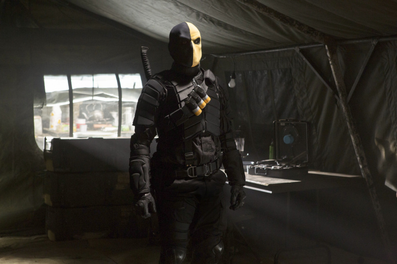 The flashbacks to Oliver’s experiences on the island have been the most exciting parts of ARROW thus far, and “Damaged” continues that trend. After a younger, softer Oliver is captured by a paramilitary gang, he’s questioned by their leader, Edward Fyres, (Sebastian Dunn), who finally (finally!) gives us a cold, calculating villain who seems good at villainy. When Oliver refuses to give Fyres the information he wants, (the whereabouts of Oliver’s island benefactor Yao Fei, played by Byron Mann), Fyres makes Oliver pay for it. “Deathstroke” (Jeffrey C. Robinson), Fyres’s mute, masked, scary enforcer, (and an actual comic book super villain if ever there was one), performs some PG-rated knife torture on younger Oliver, and back in the polygraph-ed present, Oliver is forced to explain, in front of Laurel, that this torture was the source of the scars now found all over his body. Letting Oliver’s mask of shallowness slip in front of his love interest like this is a nice moment for the show, and leaving the fates of Fyres and Deathstroke unresolved means we can look forward to them being intimidating again in future episodes.