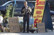 The third storyline relies largely on what is the third rail for this reviewer. Notes to the creators of GO ON and episode writer Lesley Wake Webster: 1) The death of a pet is really not funny to the pet’s owner. 2) It will occur to even a fairly unhinged person who has experienced pet loss that it may be time to acquire another pet. 3) Nobody adopts thirteen cats in one day. That’s not how “crazy cat people” are created, nor will animal adoption agencies allow anything like this. 4) It is not possible to find good homes for thirteen adult cats in one day – it is possible to dump them at a shelter or sell them to a laboratory, but not find actual good homes. Because a surprising number of adults are actually ignorant about these matters, this is really unfunny. Once again, this whole topic is a personal sore point, which makes reviewer and subject a bad fit here.
