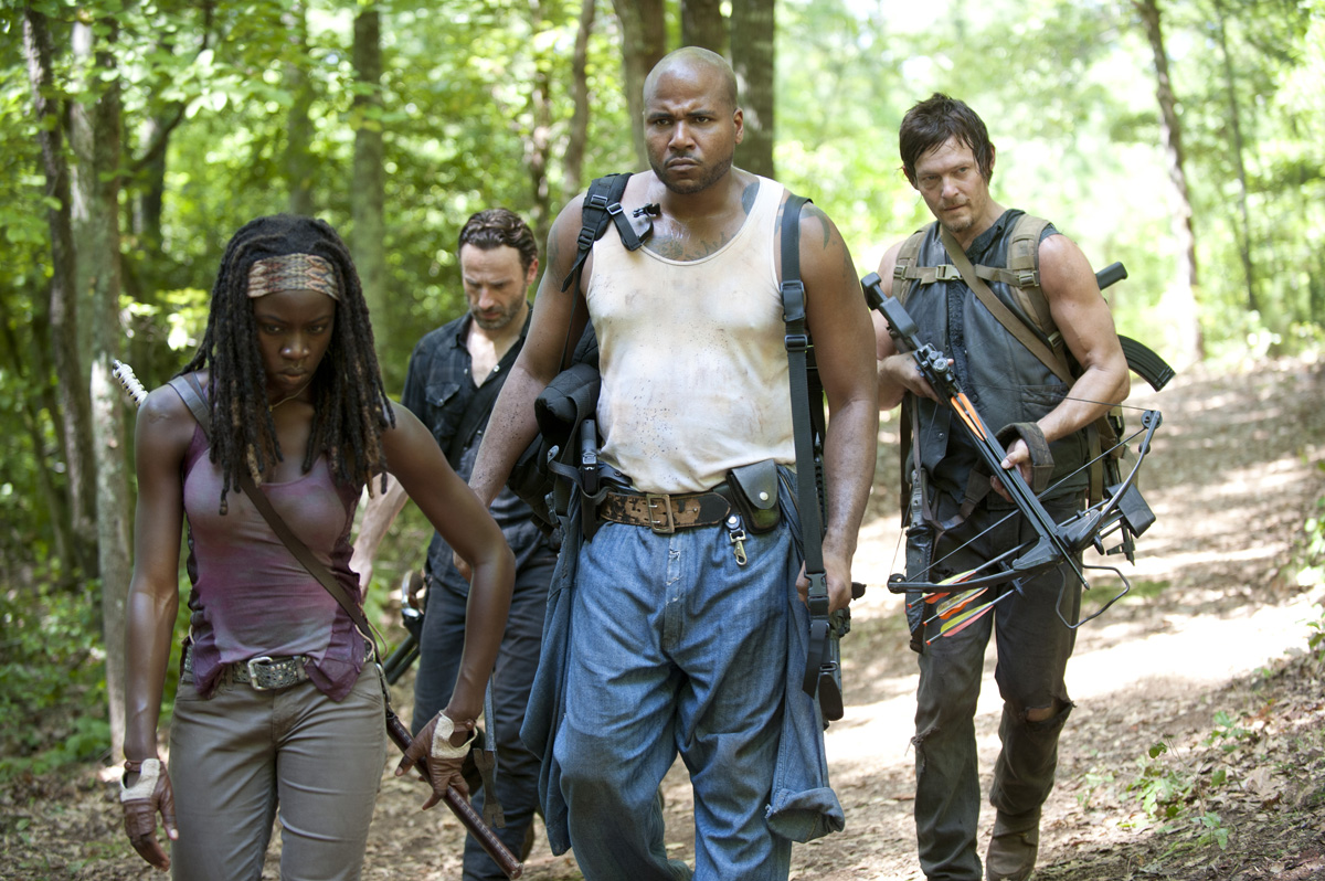 Danai Gurira, Andrew Lincoln, Vincent Ward and Norman Reedus in THE WALKING DEAD - Season 3 - "When the Dead Come Knocking" | ©2012 AMC/Gene Page