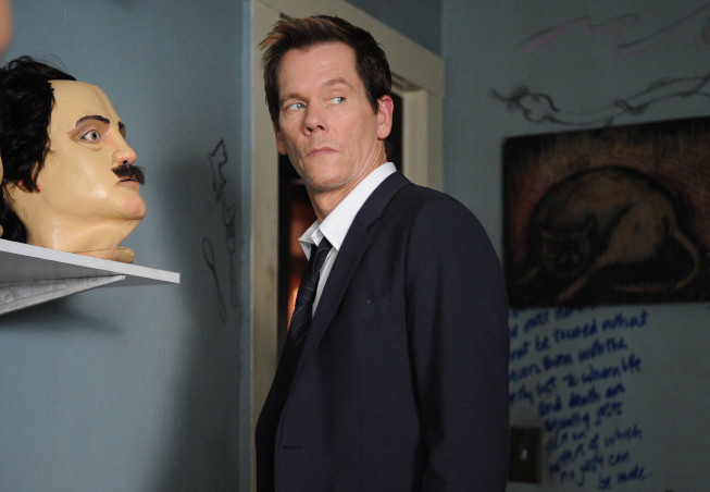 WILLIAMSON: It was really interesting, because when I heard he was interested, I’m like, “Well, what role does he want to play?” Because he could honestly play either role [Ryan Harding or Joe Carroll], that’s how good he is. And then one of the agents I was talking to was clueless and he hadn’t read the script, and he said, “Oh, he wants to play the hero, Joe Carroll.” I was like, “No, the hero’s Ryan Harding, what role …?” “No, he wants to play Joe Carroll.” “The hero?” “Yeah.” The funny thing is, all the way through the meeting [with Bacon], I didn’t know what role he wanted to play, because they got it all mixed up. And then I was, “He’s going to want to play Ryan Harding, I’m sure of it.” Because let’s put it this way – I want him to play Ryan Harding because I want to see him be a hero again. Because I feel like he has played these interesting, quirky, crazy people. I wanted to see him being a hero. I wanted to see him John Wayne his way in and take out the bad guy.