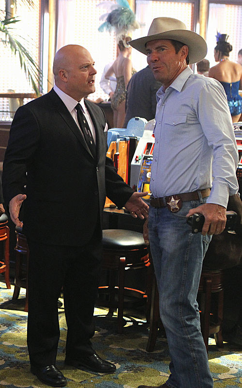 On VEGAS, which has its first-season finale on CBS, Friday May 10 at 9 PM, Chiklis’ Savino has been bumping heads with rancher-turned-sheriff Ralph Lamb, played by Dennis Quaid. There is a real Ralph Lamb, who really was a rancher turned sheriff – his story is the basis for the series.