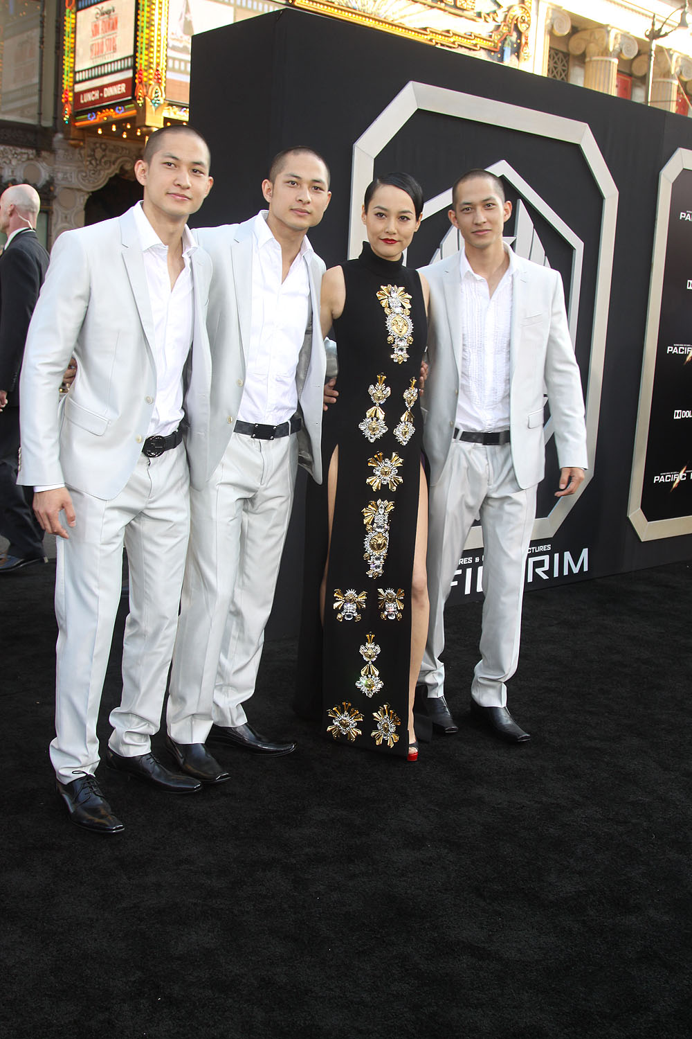 Rinko Kikuchi and the Luu Triplets at the Los Angeles Premiere of PACIFIC RIM | ©2013 Sue Schneider