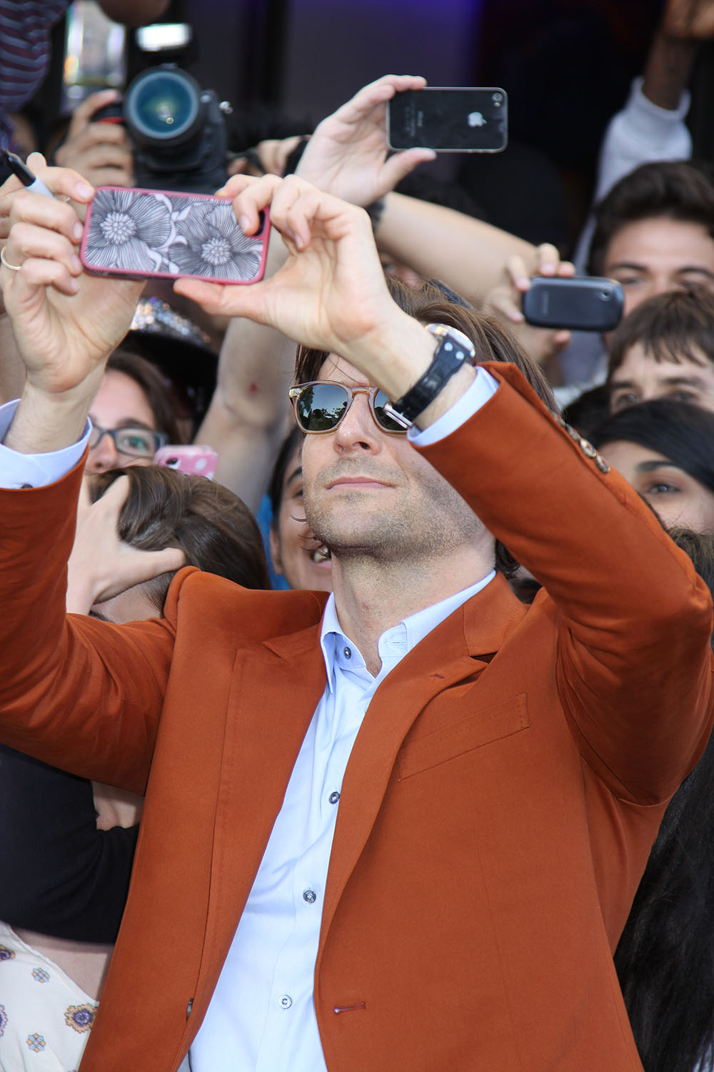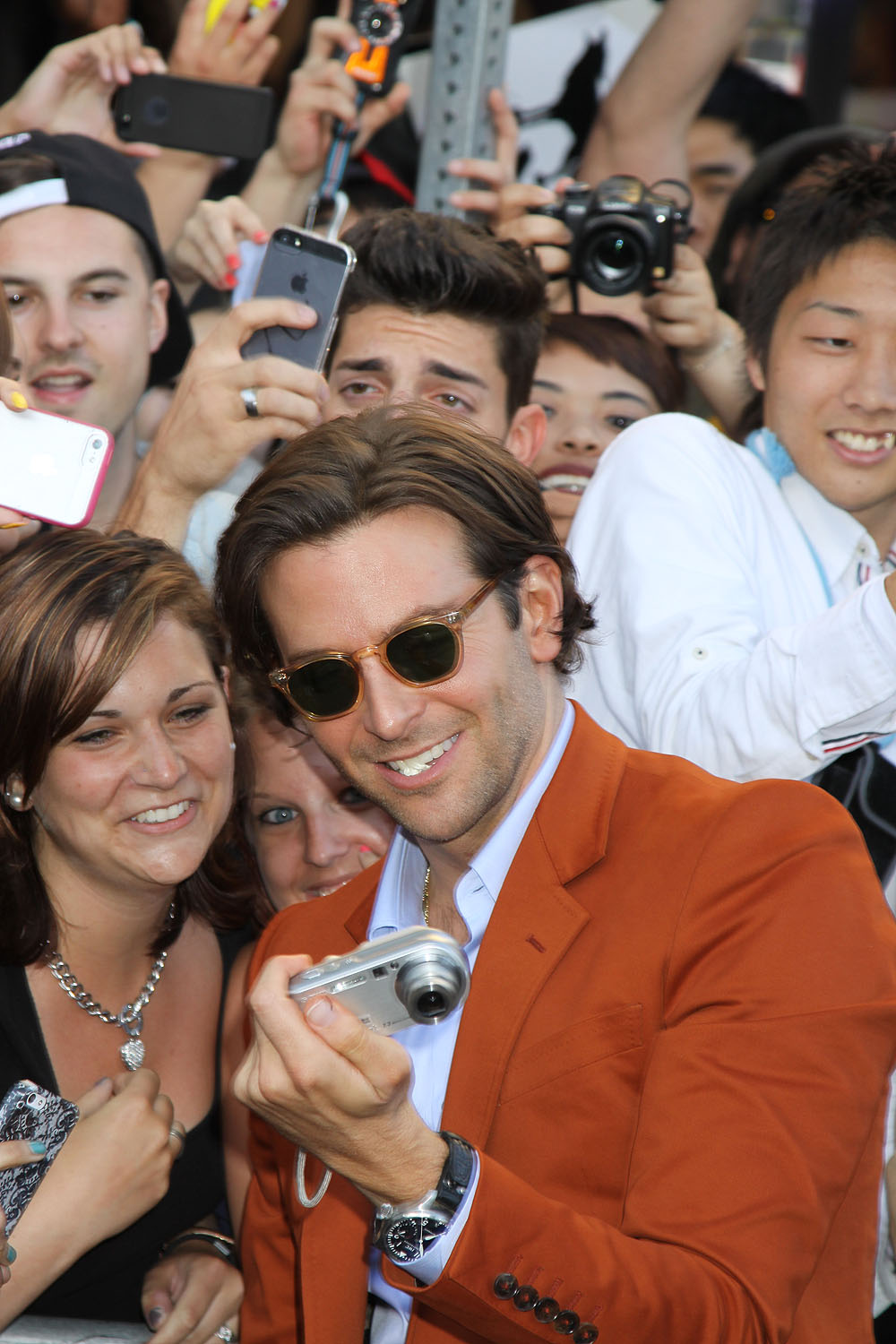 Fans lined all the streets and when Bradley Cooper arrived the fans screamed and screamed. Walking over to the crowd of fans behind us he went down the line taking the cell phones of the fans and taking pictures of himself with the fans behind him, and signing autographs.