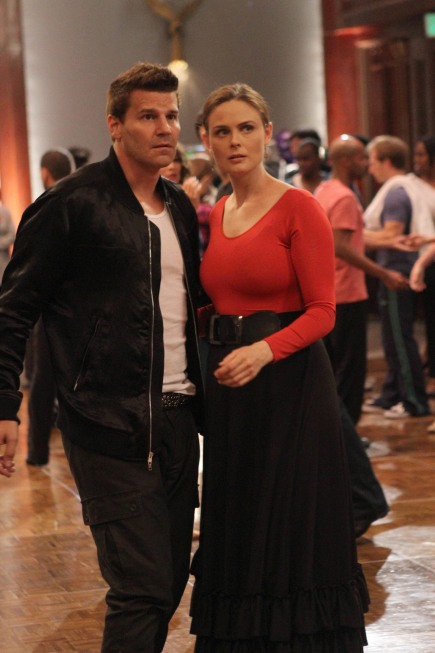 Deschanel seems to be having particular fun with Brennan’s enjoyment of both dancing and competition – when Brennan engages in anything, she plays to win – and there’s no denying that she and Boreanaz both look swell in the formal wear. Brennan’s joy and klutziness are both part of the humor here, which would be fine if it made more sense that they were in the competition in the first place. (The episode tries to work around this by having Booth ready to pull out at a moment’s notice, but it’s still a pretty flimsy premise.)