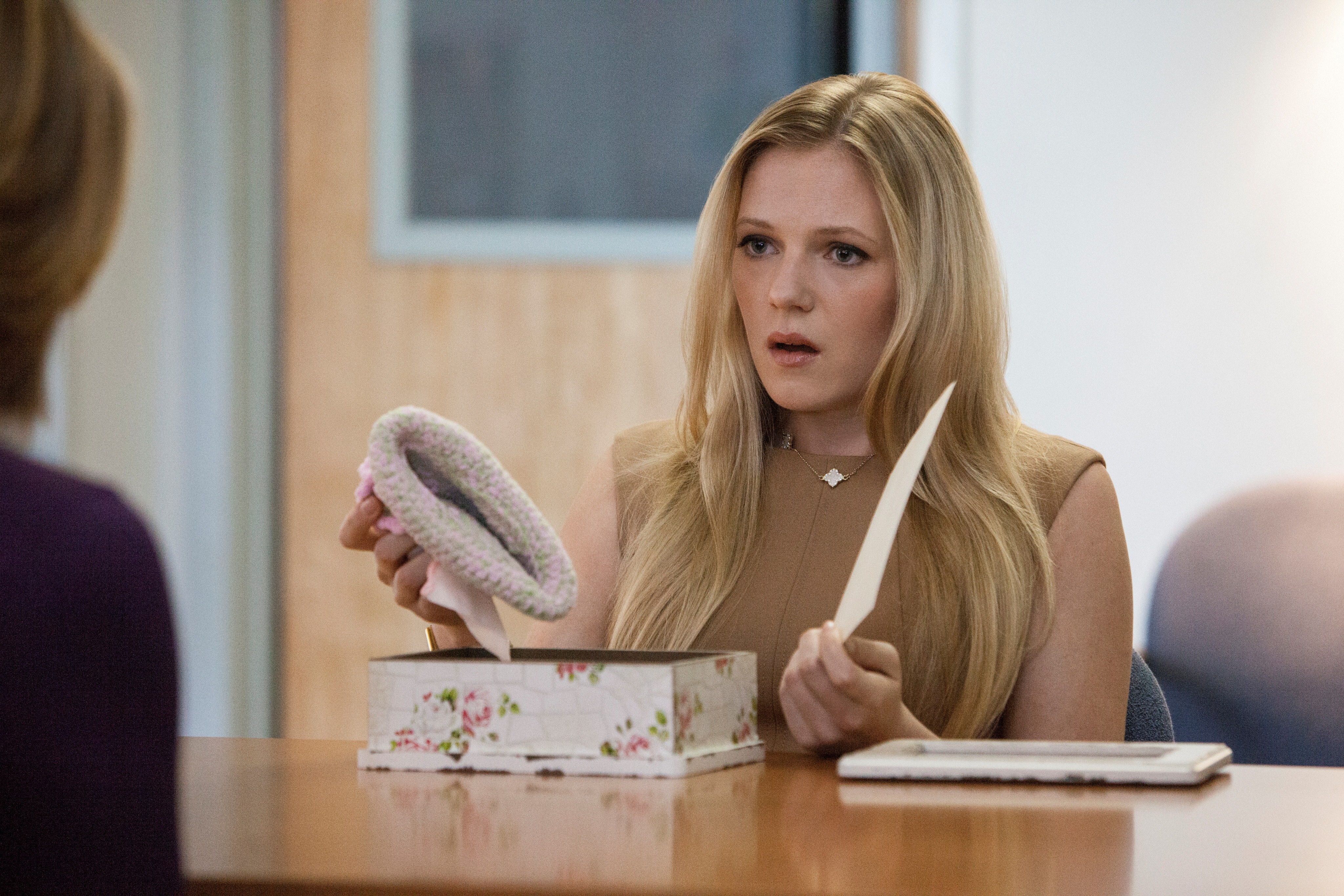 Meanwhile, Annie (Brenda Strong, who continues to mesmerize us in every scene she’s in) learns her evil ex husband Harris Ryland (Mitch Pileggi), who has no problem being vindictive himself, kidnapped their daughter long ago and let her believe all this time that she was missing. Annie is beyond distraught and seeks charges against her despicable ex, which are soon dropped. Their daughter Emma hates her and still wants nothing to do with her but that doesn’t stop Annie from trying.