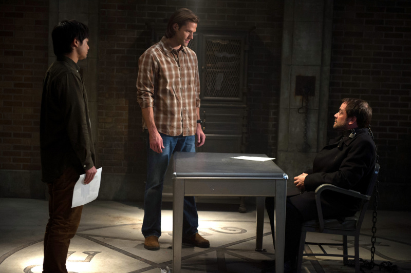 Osric Chau, Jared Padalecki and Mark A. Sheppard in SUPERNATURAL - Season 9 - "Heaven Can't Wait" | ©2013 The CW/Diyah Pera