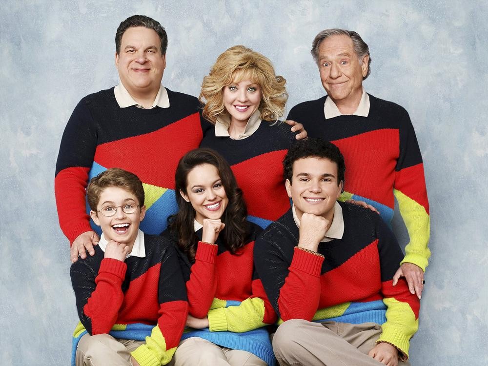 Wendi McLendon-Covey, Sean Giambrone, Troy Gentile, Hayley Orrantia, George Segal, and Jeff Garlin in THE GOLDBERGS - Season 1 | ©2013 ABC/Craig Sjodin