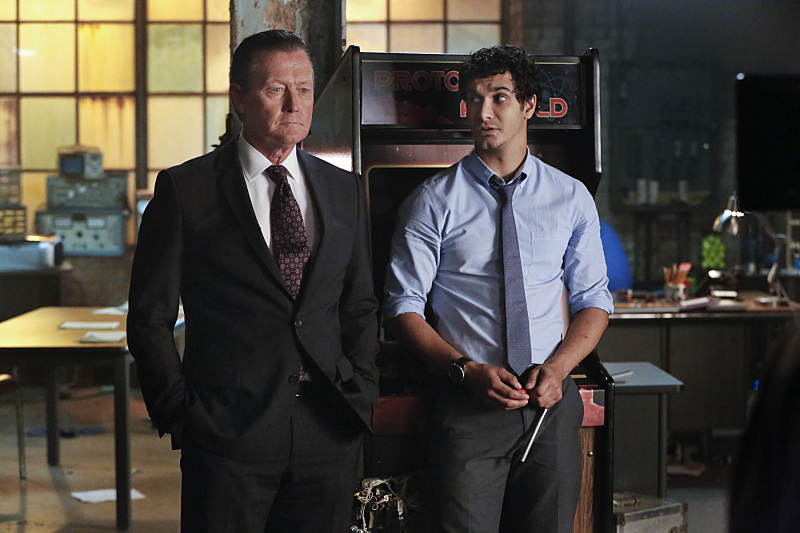 What happened was, the character that Robert Patrick plays, Cade Gallo, became my surrogate father in a way. I was a genius, I hacked into places and elements that I shouldn’t have been in – governments, NASA, places that nobody should be in – when I was thirteen. Cade was responsible for removing me from my home in Ireland [and recruiting Walter for the FBI]. So a few years down the line, I give him a software package that’s ostensibly meant to drop Red Cross aid packages, to help kids, shelter, food. And what it does – I turn on the TV a little bit later, and they’re using the software for drones to drop bombs in Iraq. And because I developed it for speed, it’s just drop, drop, drop, speed over accuracy. I developed it for speed over accuracy for a reason, but they use it for a different reason, in a different context, and end up killing two thousand people who weren’t culpable. They were collateral damage. That’s the raison d’etre for what he’s trying to accomplish [by saving people] right now.