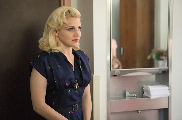 One of the most unusual original characters is Annaleigh Ashford’s Betty DiMello. During the course of MASTERS OF SEX so far, we’ve seen Betty go from a lesbian prostitute who is instrumental in helping Masters and Johnson get their study started to an upwardly mobile woman who is unaware that her adoring businessman husband Gene, played by Greg Grunberg, was actually one of her clients at the brothel. Betty and Gene are starting to get past some whopping lies she told him, but now Betty’s ex (Sarah Silverman) is returning to the scene to add new complications.