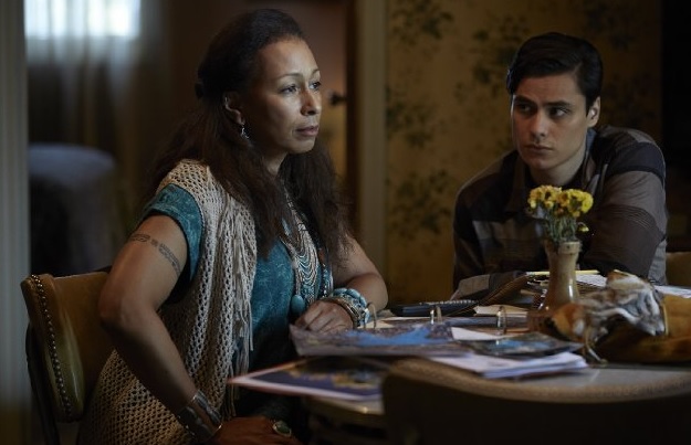 In Sundance TV’s six-hour drama series THE RED ROAD, created by Aaron Guzikowski, Tamara Tunie plays Marie, a Native American living in a smallNew Jersey town in theRamapoMountains. Marie isn’t thrilled when her grown son Phillip Kopus (Jason Momoa) comes back from prison, even before he gets tangled up in dark doings involving his old schoolmate, sheriff’s deputy Harold Jensen (Martin Henderson) and Harold’s wife Jean (Julianne Nicholson). Marie is busy raising her adopted son Junior (Kiowa Gordon) and wants to keep him away from the kind of trouble that Kopus seems to attract, but that may not be possible.