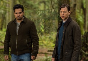 One of several changes, however, is that the dead boy’s family in GRACEPOINT is Episcopalian. Kevin Rankin plays the Reverend Paul Coates, who has a close relationship with grieving mother Beth Solano (Virginia Kull) and a somewhat adversarial relationship with angry father Mark Solano (Michael Pena).