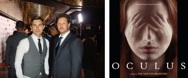 Ok. They aren’t really The Newton Brothers. But Tayor Newton Stewart (L) and Andy Grush (R) are bound by musical blood with an impressive sense of invention that’s now really paying off, especially as they look into the a terrifying mirror world, and hear a dimension of pulsing sound whose samples, damned voices and slithering strings are the truly scary equivalent of ghost-filled glass for OCULUS (Varese Sarabande Records).