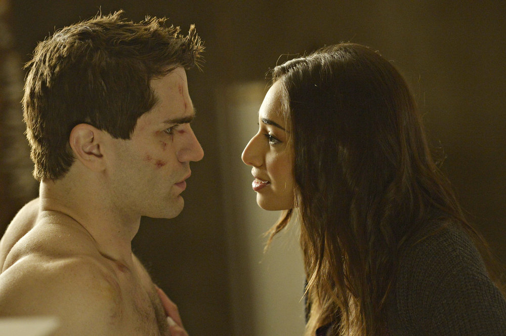 Sam Witwer as Aidan Waite, Meaghan Rath as Sally Malik in BEING HUMAN "Ramona the Pest" | © 2014 Philippe Bosse/Syfy