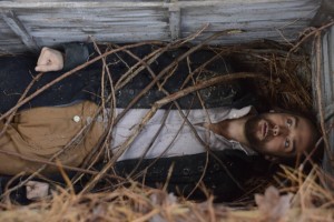 Just as Ichabod’s old friend Abraham is now the Horseman Death, Henry/Jeremy is War. War isn’t coming to Sleepy Hollow; it’s already here. Henry/Jeremy causes his parents to be bound with vines, then renders Katrina unconscious. Against Ichabod’s screamed objections, Henry/Jeremy turns Katrina over to headless former suitor Abraham, aka Death. Then Henry/Jeremy dumps Ichabod into the coffin where the boy was imprisoned for so many years.