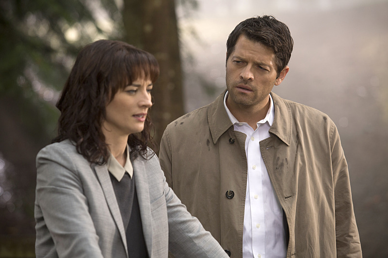 Erica Carroll as Hannah and Misha Collins as Castiel in SUPERNATURAL - Season 10 - "Girls, Girls, Girls" | ©2014 The CW/Katie Yu