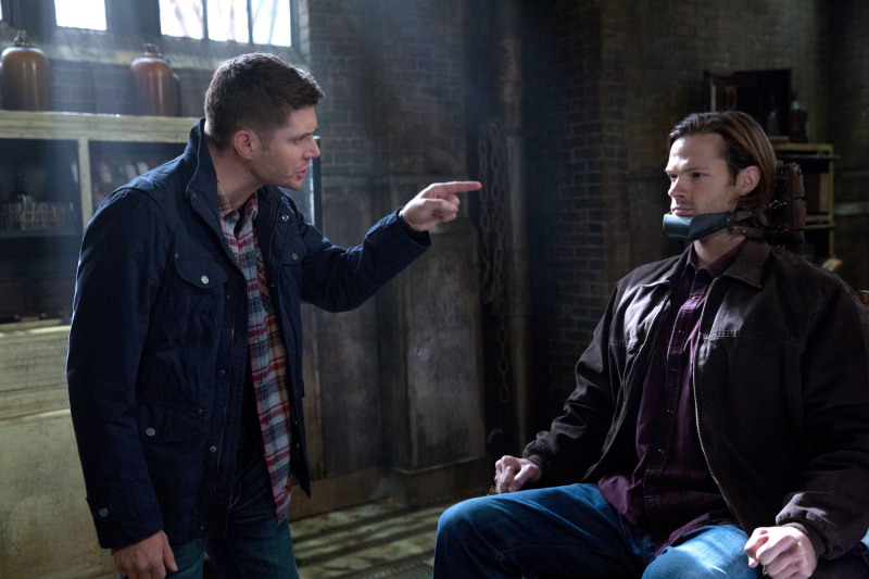 Dean (Jensen Ackles) tries to purge the angel from Sam (Jared Padalecki) on SUPERNATURAL "Road Trip" | © 2014 Jack Rowand/The CW