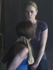 Before the get-together in the Fangtasia basement, Jessica has been having a horrible time of her own. When she goes to try to rescue Adilyn (Bailey Noble) and Wade (Noah Matthews) from the vengeful Violet (Karolina Wydra), Jess is taken prisoner herself. Violet sends email photos to Jason (Ryan Kwanten), who heads to Violet’s house. Because Hoyt (Jim Parrack), who still doesn’t remember knowing Jason or Jessica, and his current girlfriend Bridget (Ashley Hinshaw) are having an argument over kids – she wants them, he doesn’t – Bridget jumps into Jason’s sheriff’s car and refuses to leave.