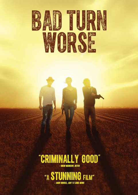 BAD TURN WORSE – Three friends steal from a small town crime boss and become indebted to pay what they stole back. The crime boss concocts a plan to have the three friends get the money back by stealing from an even bigger crime boss. Unfortunately, they don’t seem to up for the adventure and it takes some persuasion in order to get them to commit to rob the bigger crime boss. Mix this in with some paranoia and cheating from among the three and it gets to be a jumbled mess with everyone thinking everyone is doing something bad and trust is a hard item to come by. Of course, things get even worse when they actually go on the raid and someone beat them to the punch on the money and the paranoia and problems become that much worse for the trio. BAD TURN WORSE is a pretty decent flick with some good tension and enough twists that makes it interesting but the acting is top notch with a great performance from TV stalwart Mark Pellegrino.